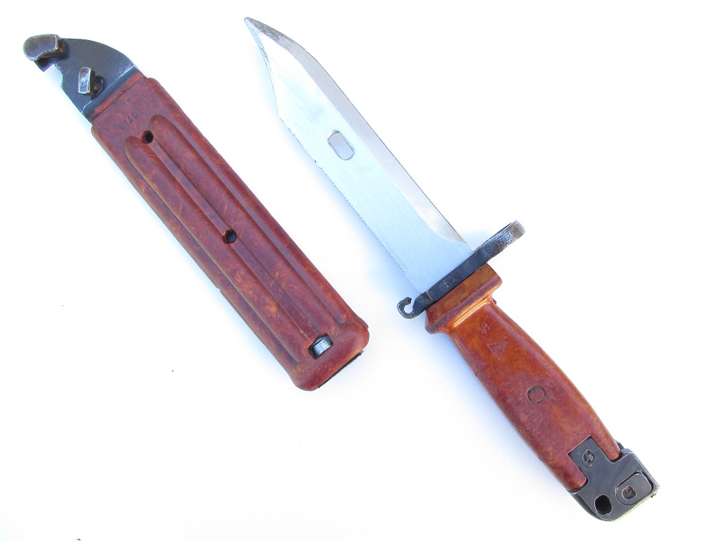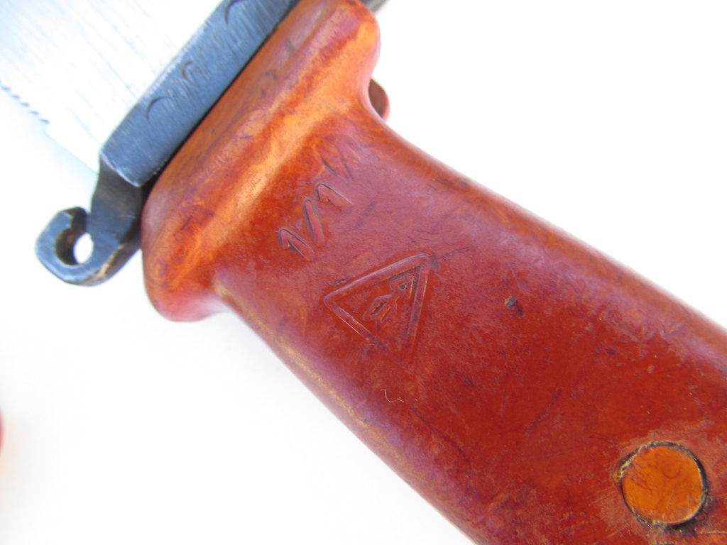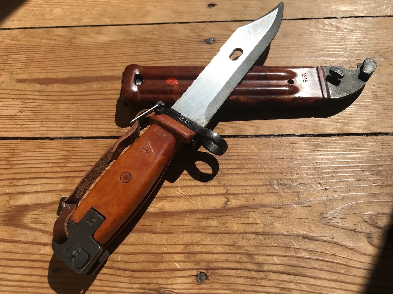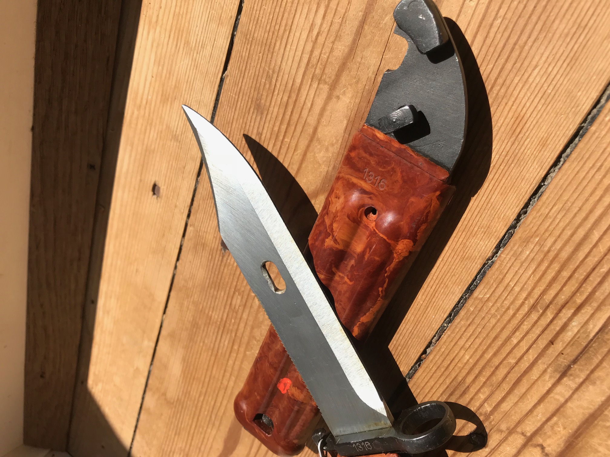 this one came from the US. It could potentially have come from the AoA thing. A reseller from lithuania bought about 10 pieces from the US. All with the double cugir logo. He told me he missed some with letters on the scabbard. I was also told that these had been in Romanian armory storage for all these years and then sold with romanian rifle kits. Production year were determined to be 1992.