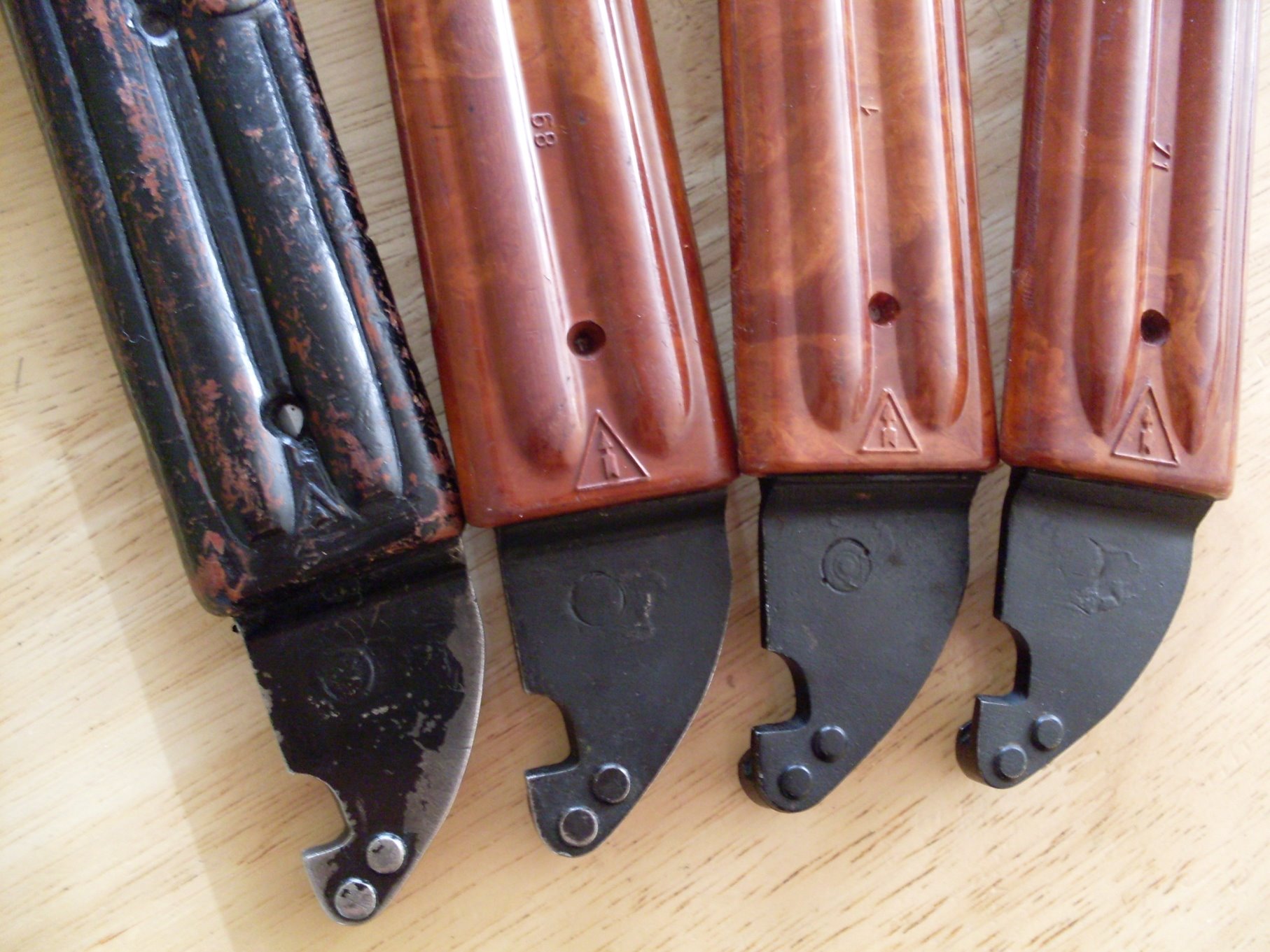 Guess you haven´t seen like this - crudely painted with black // indicated for military training in soviet secondary schools.. has russian abbreviation UČ(-učebnõi) on the tip of scabbard.