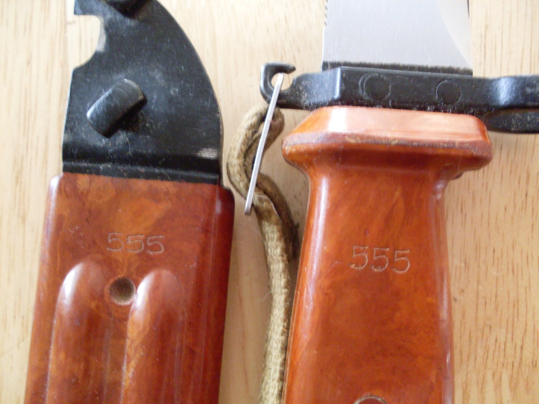 Another one, exeptionally regular - big ones Izhevsk triangles both on the knife and scabbard plus the same serial "555"