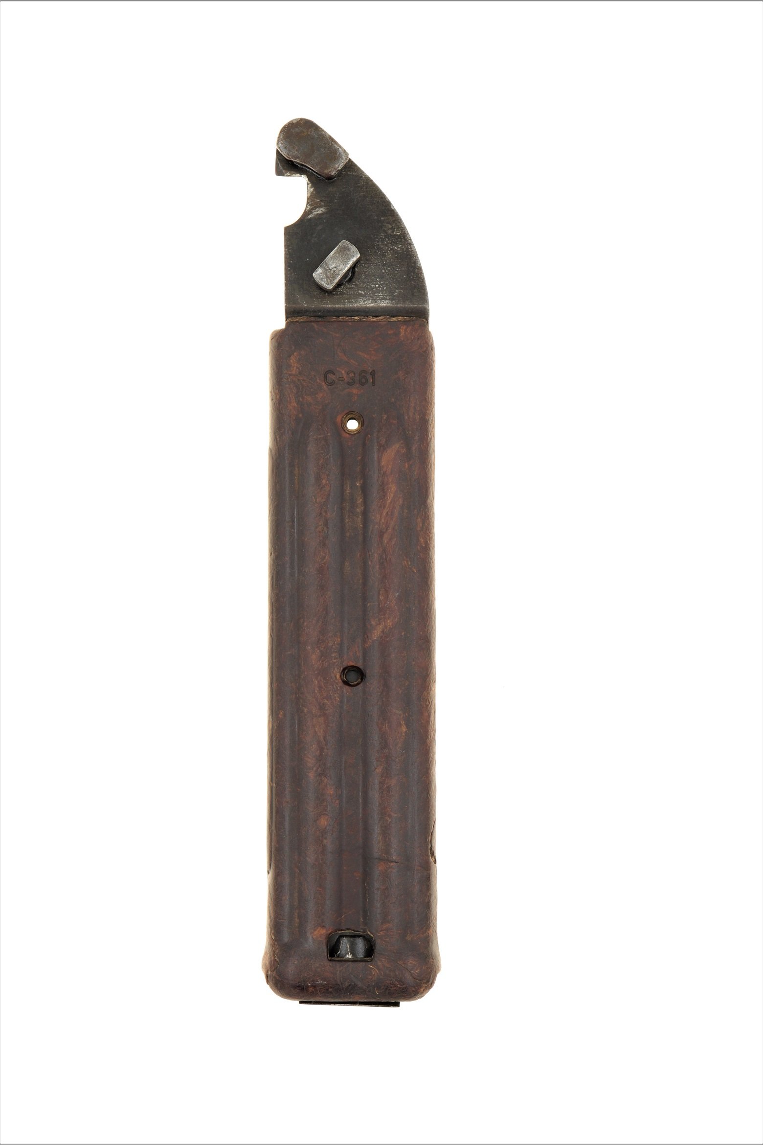 I have been studying the mystery scabbard. The serial number C-361 is a complete mystery. I have no memory of anything similar or relevant. The scabbard appears to be molded of a different material I addition to being weather worn. This, plus the lack of a Russian arsenal mark. All this plus the fact that I have never seen or heard of anything similar indicates small quantities, perhaps experimental, for testing / trials?