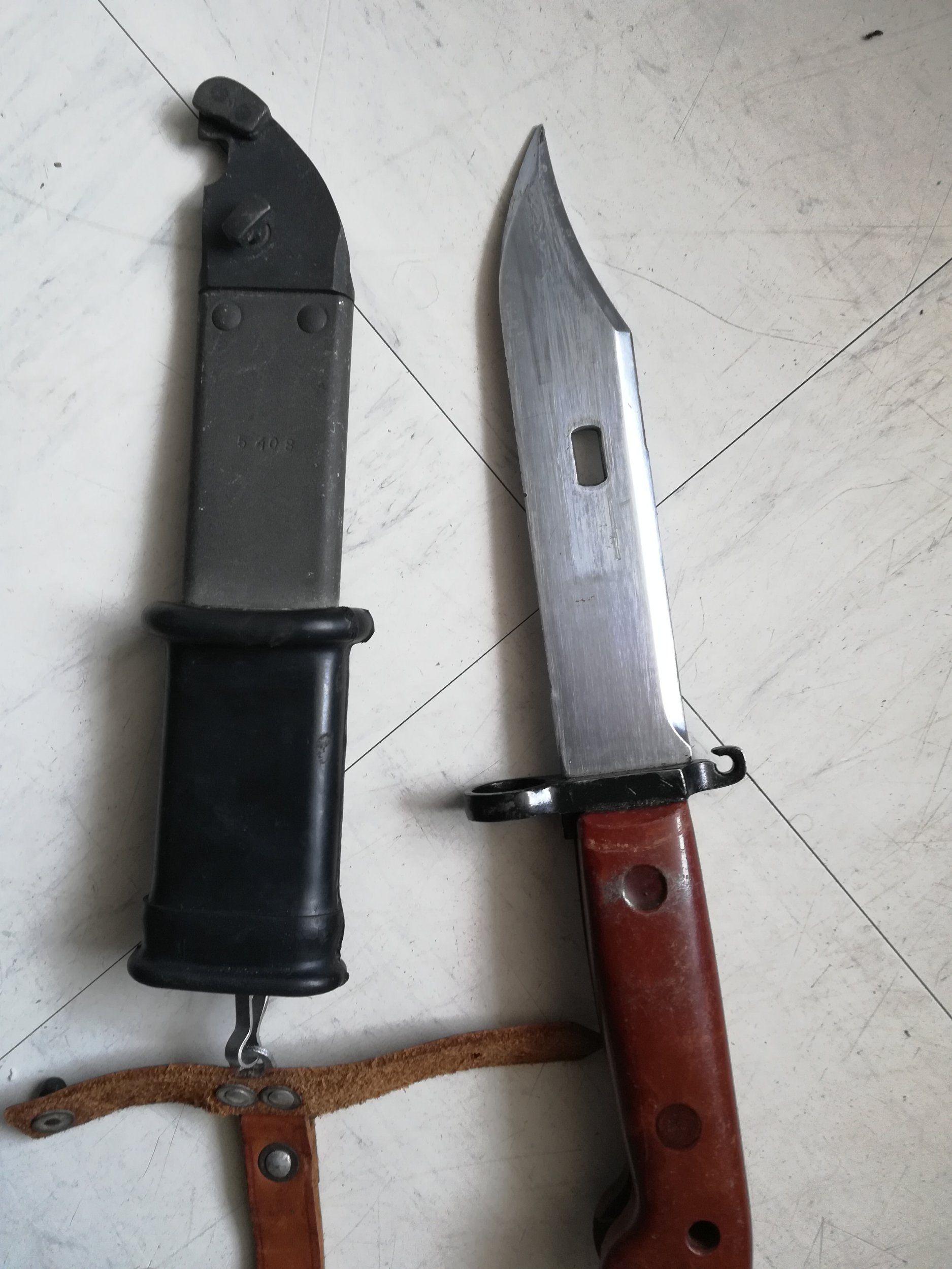 Hi, Nico, The answers to your questions can be found under this heading, "Poland" with the topic "Polish 6H4 with phosphate finish." The phosphate finished scabbards are usually found with AKM 6H4 Type II bayonets. Most of them having original or forced matched numbers. This would indicate much later production than the 6H3 Type I bayonet. It is possible that the scabbard has been reworked/refinished. but since they do not have matching numbers it is most likely that the bayonet and scabbard have been miss-matched at some point. Mike