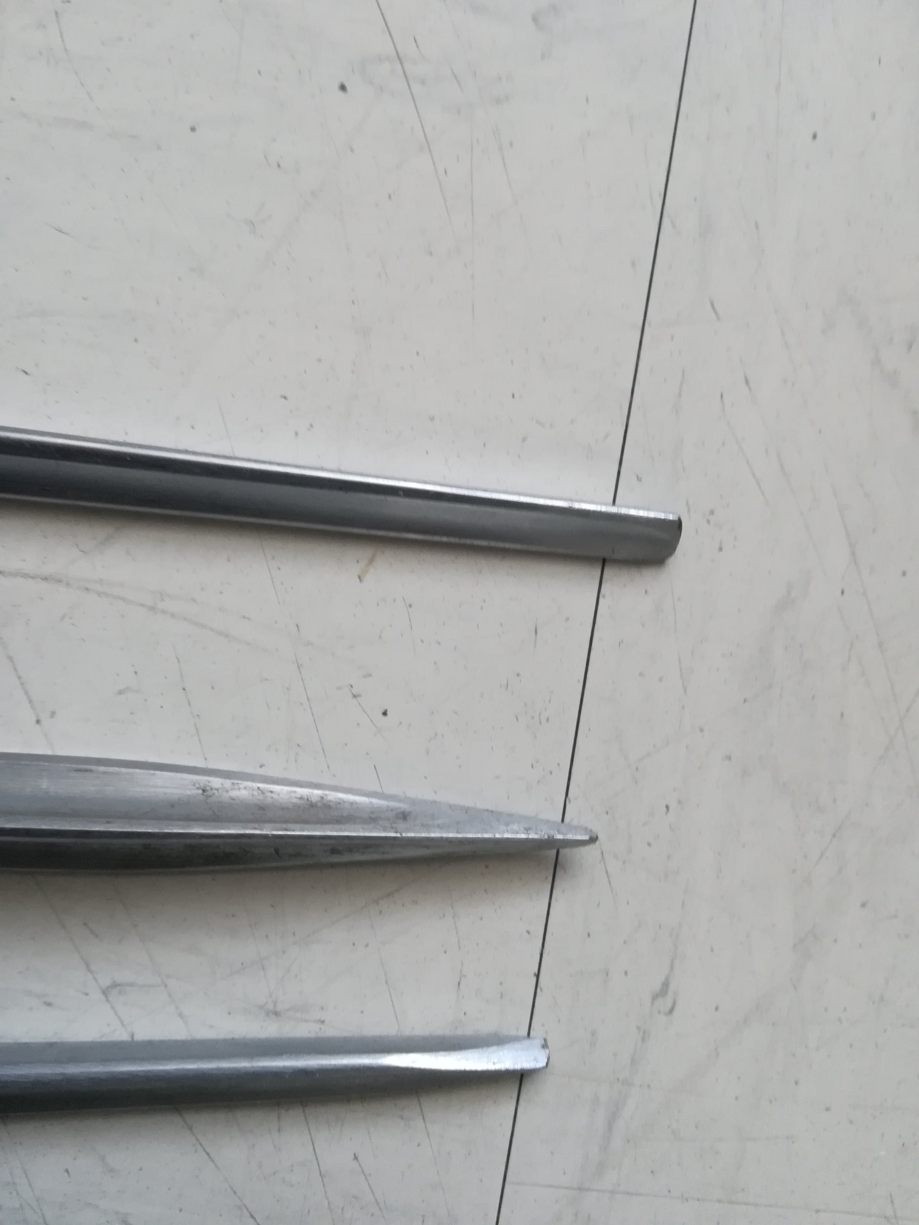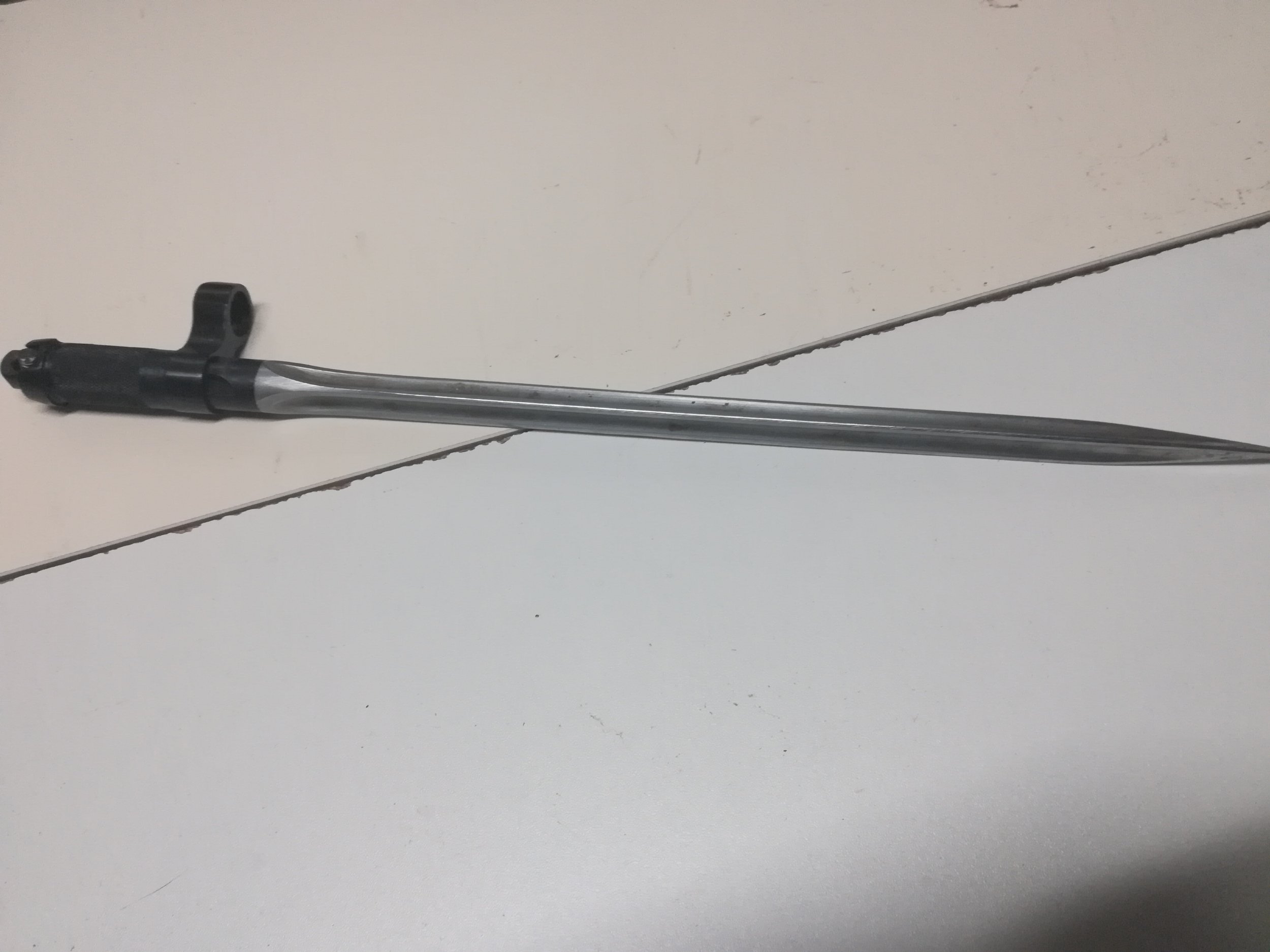 The end is pointed unlike the other two bayonets