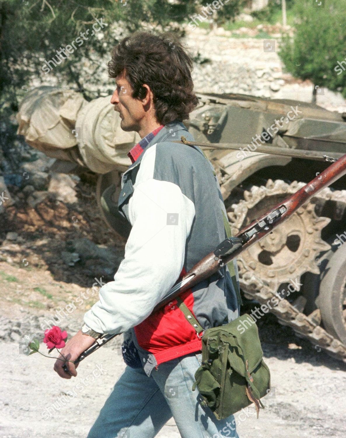 In these photos, of the looting of the barracks of the Albanian army, we can see in the photo of the man alone, that the bayonet seems pointed.