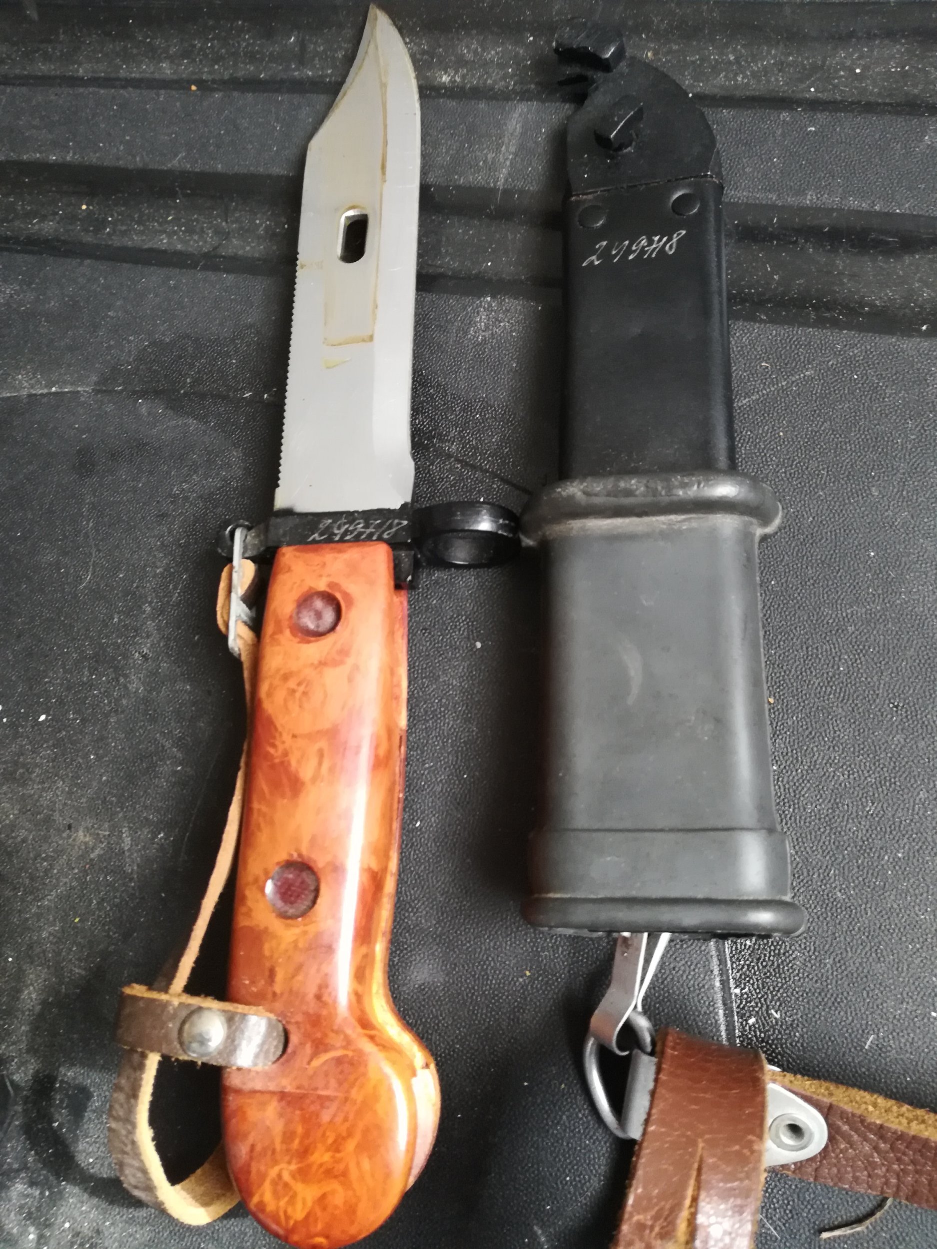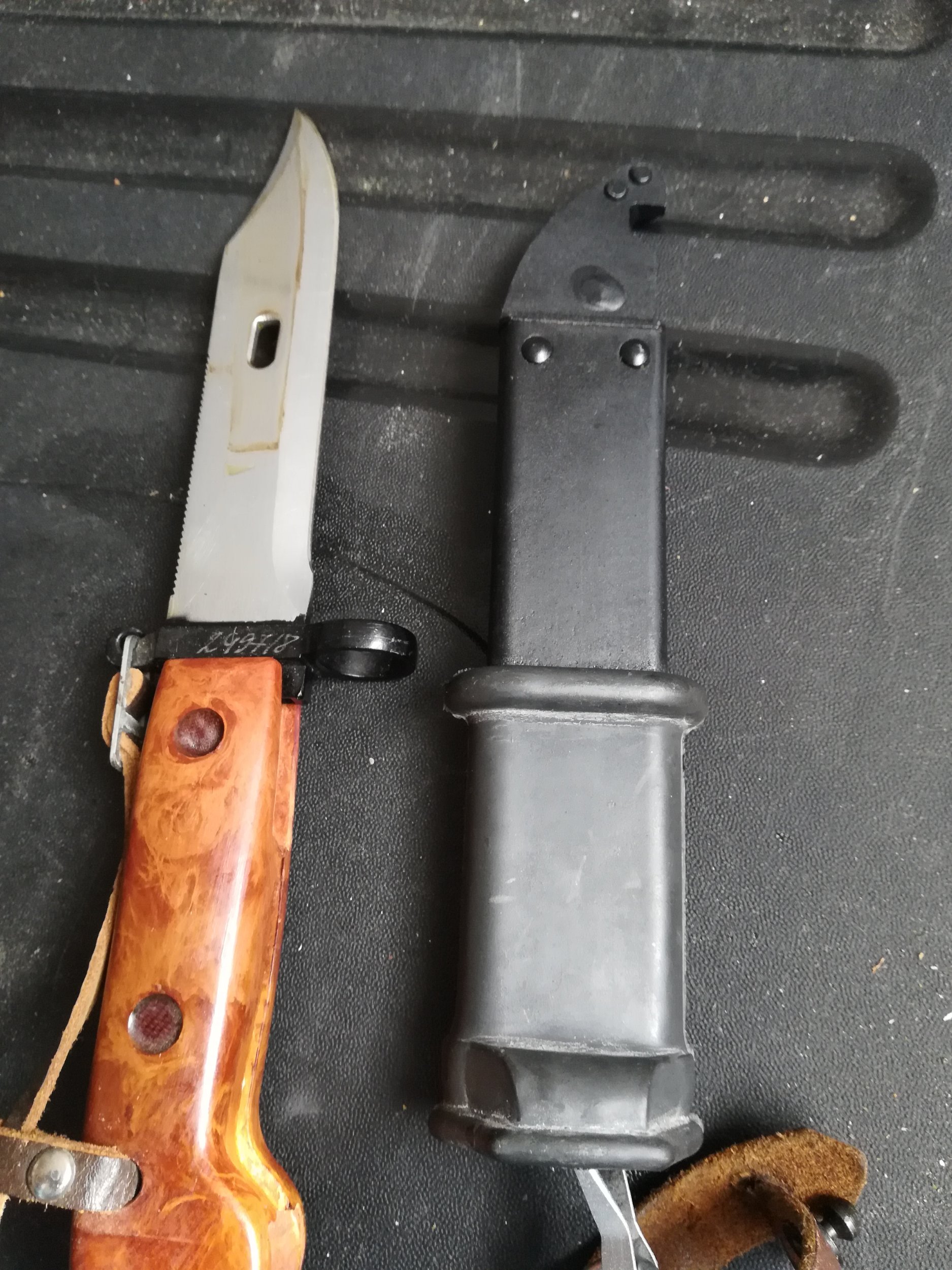 I believe that NIC056 is looking for is a trading partner. Someone with a miss-matched Izhevsk bayonet in a Tula scabbard? Or at least someone with an extra Tula scabbard for sale or trade. The hand etched rework numbers can be removed or painted over and new matching numbers hand etched if desired, (I left mine un-numbered). Anyone out there need a Izhevsk scabbard? Mike