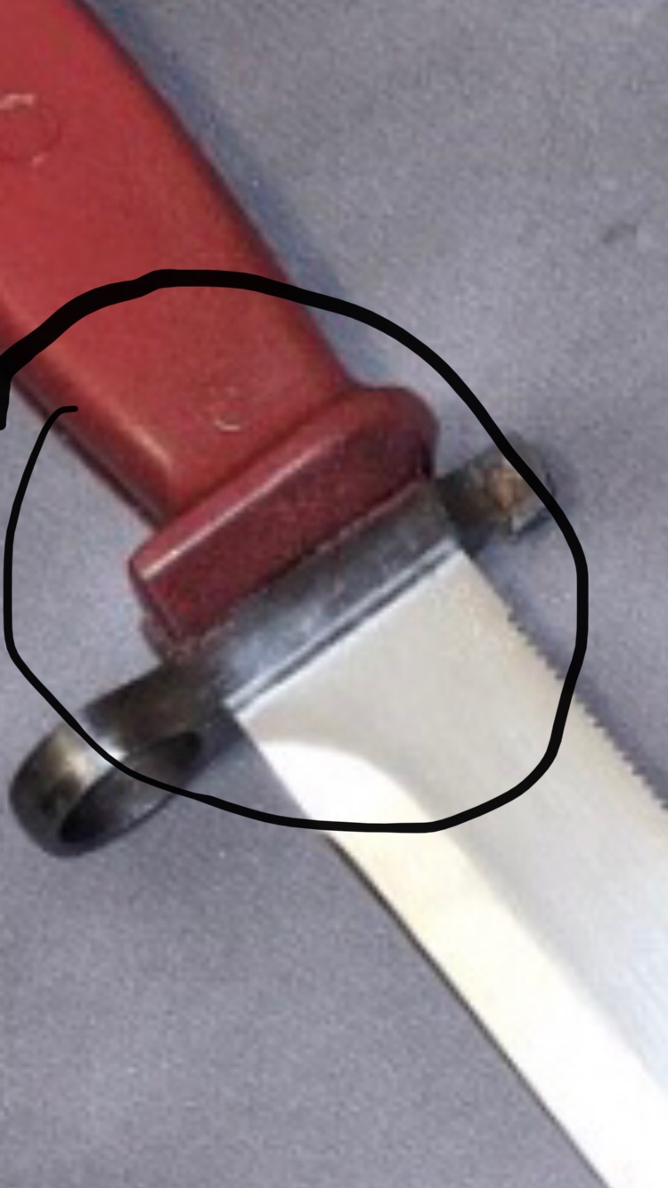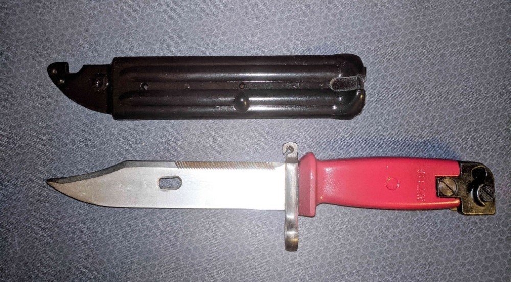 Still not much information available about these Serbian or Yugoslavian AKM 6X4 Type II bayonets and scabbards with "red" grips / handles. I found some pictures of the other, (right), side of the bayonets. Anybody have any knowledge, information or opinions about these bayonets? Any one own one?