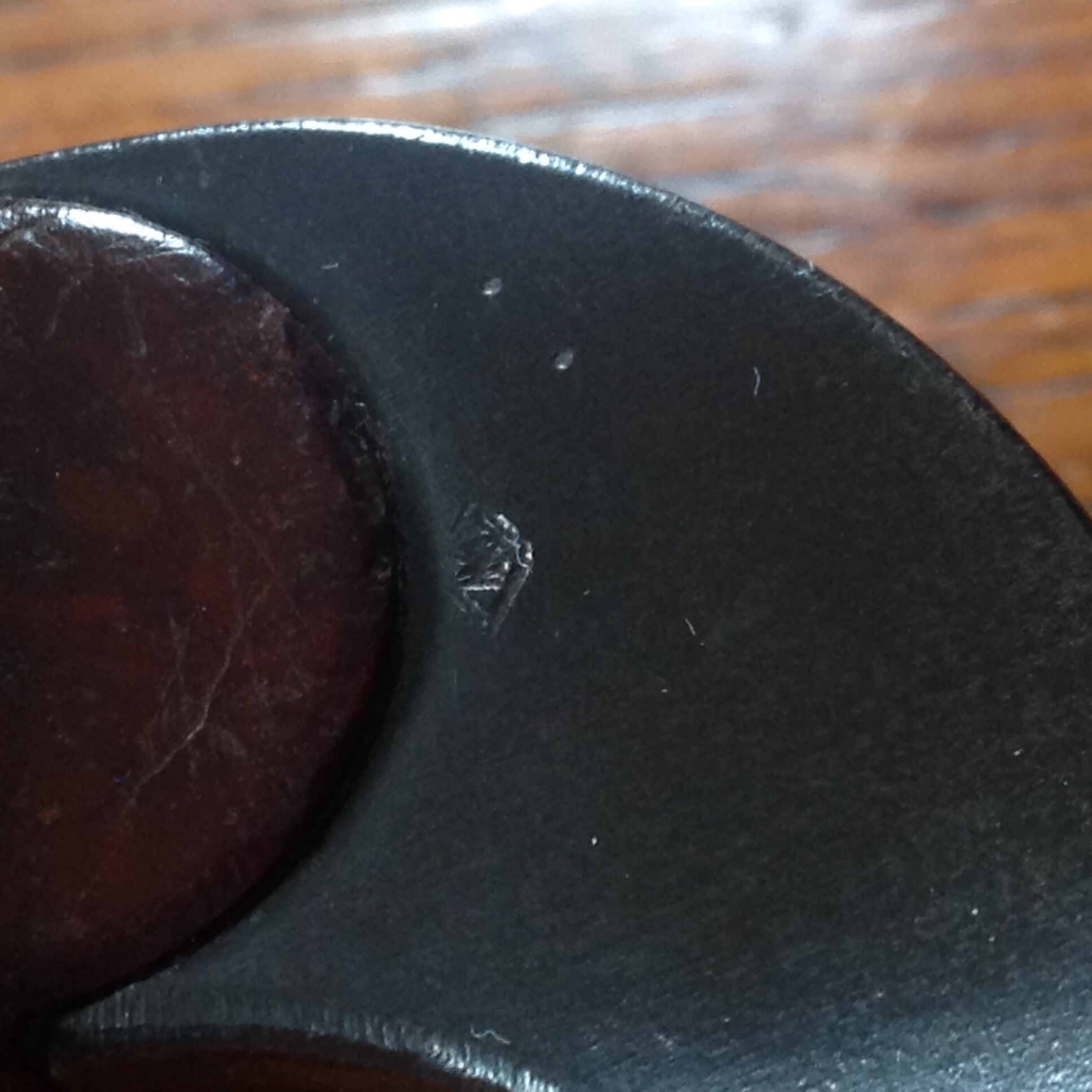 Here is an enlarged copy of one of your pictures showing the marked out Russian military acceptance stamp. Below is a close up of my earliest Russian AK47 bayonet showing the acceptance stamp, (flattened diamond containing CB), and the original long Russian numbers. In MHO, I would file your bayonet and scabbard as Finnish 1st contract.