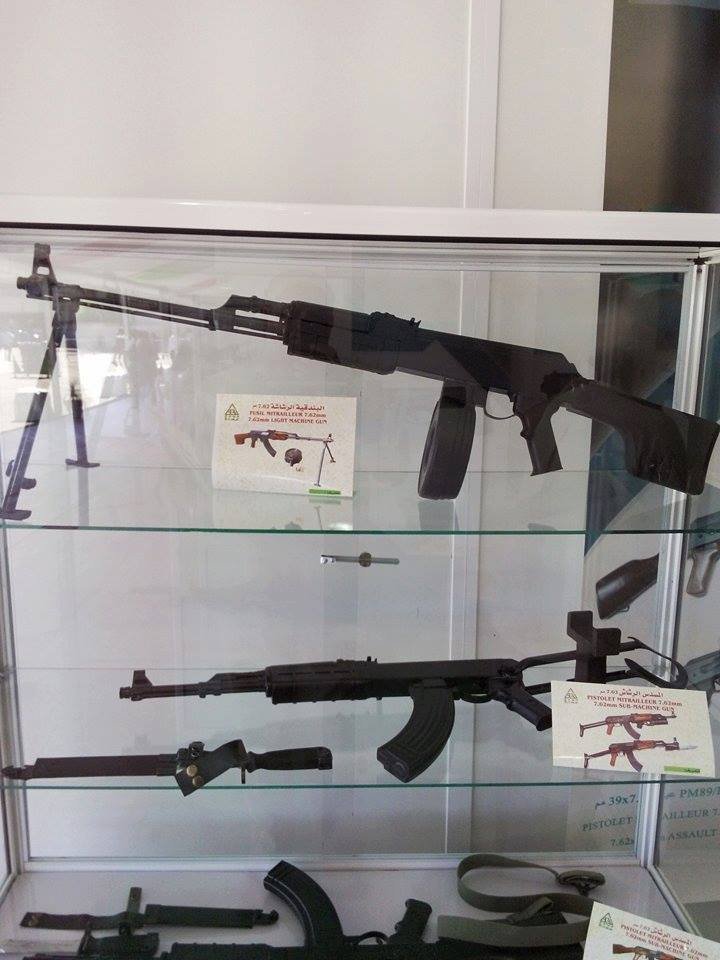Nice find. That is in the format of your basic Chinese export catalog but is from an Algerian company using an Chinese arsenal code of 831 and is in Arabic and French. They are referring to the rifles as the Type 89. Black gripped version of the Type 81 with wire cutter scabbard is definitely interesting as is what looks like a local produced version of the Soviet GP25 under barrel grenade launcher. They also appear to produce an RPK with what appears to be a horizontal drum in the catalog photo, a Makarov copy, and a 12 gauge pump shotgun. The Makarov and 12 gauge would be copies of copies produced by the Chinese.