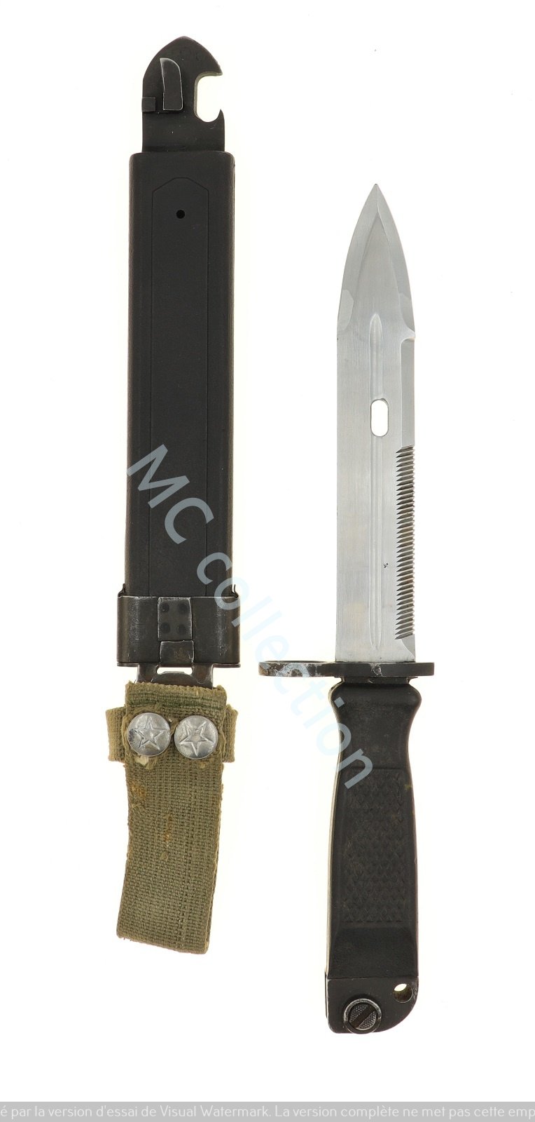 On an Algerian forum devoted to military questions, I could find these photos of bayonets, resembling that of Chinese type 87, but used for Algerian type 56.