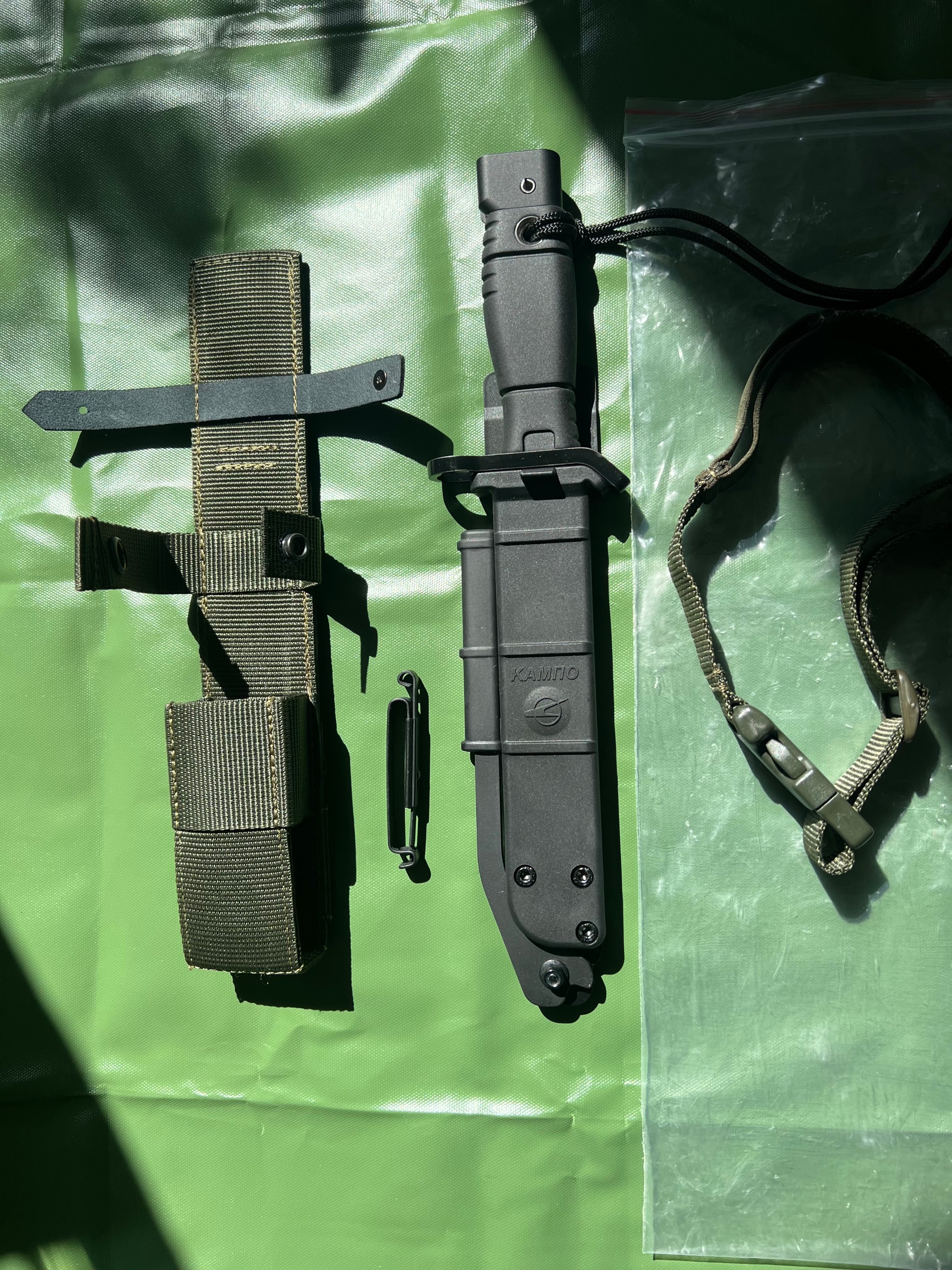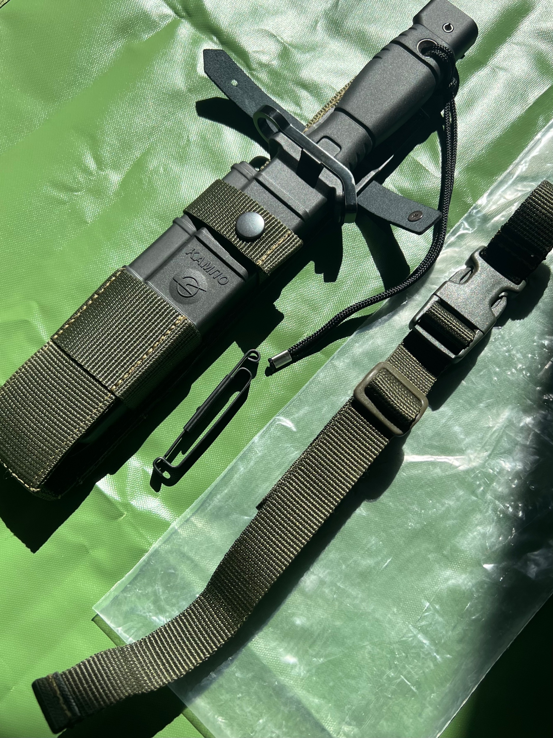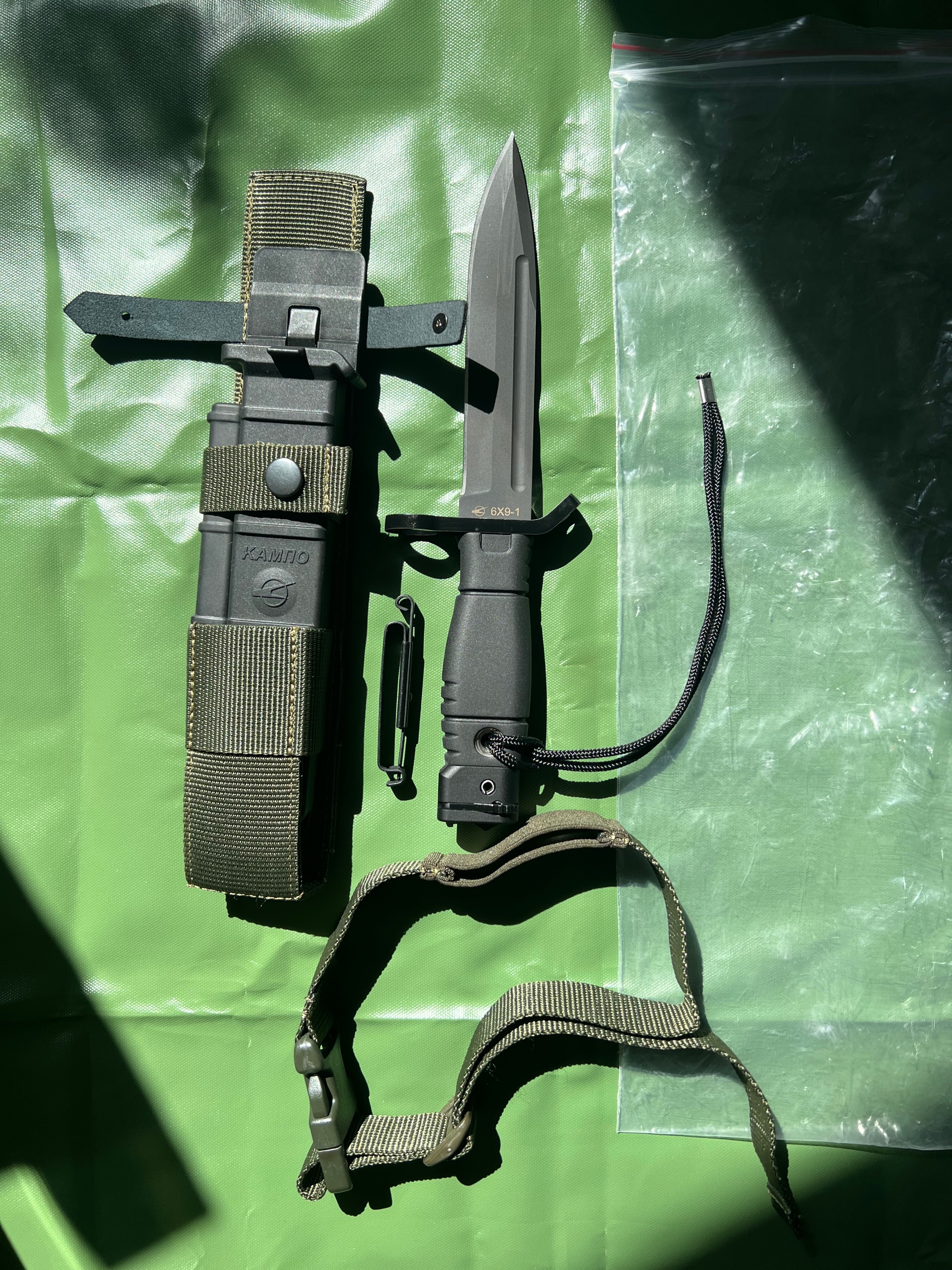 For your viewing pleasure. 6x9-1 military issued bayonet in original plastic bag. The bayonet is in unissued mint condition with all the usual KAMPO accessories. The bayonet is numbered, but in order to protect the source of these I have made it non visible.