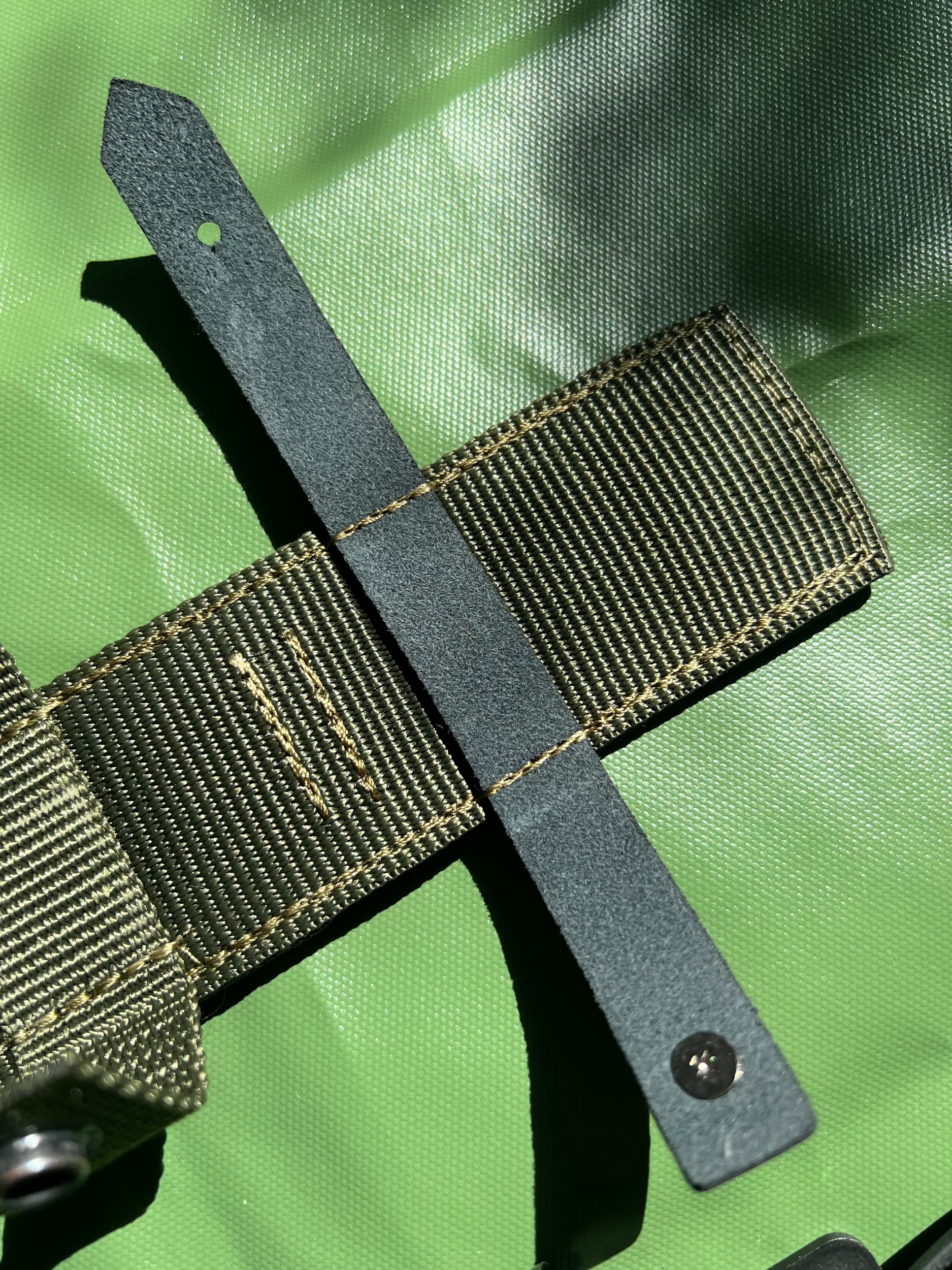There has been made quite a few changes in the design comparing to the later second model. Note the changes in blade design and finish. The scabbard of the trail version is heavier with a thicker sharpening stone and more screws overall. Cutter plate area on the trail version is of a different type finish in the metal surface. Grip and pommel is near identical. The colour of the frog fabric is also different between the two with a lighter green on the prototype.