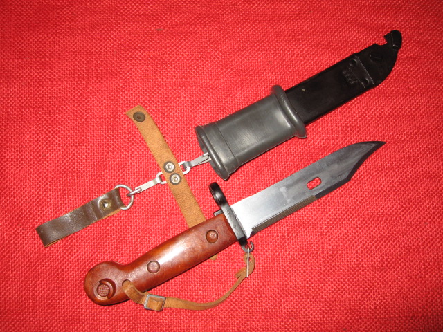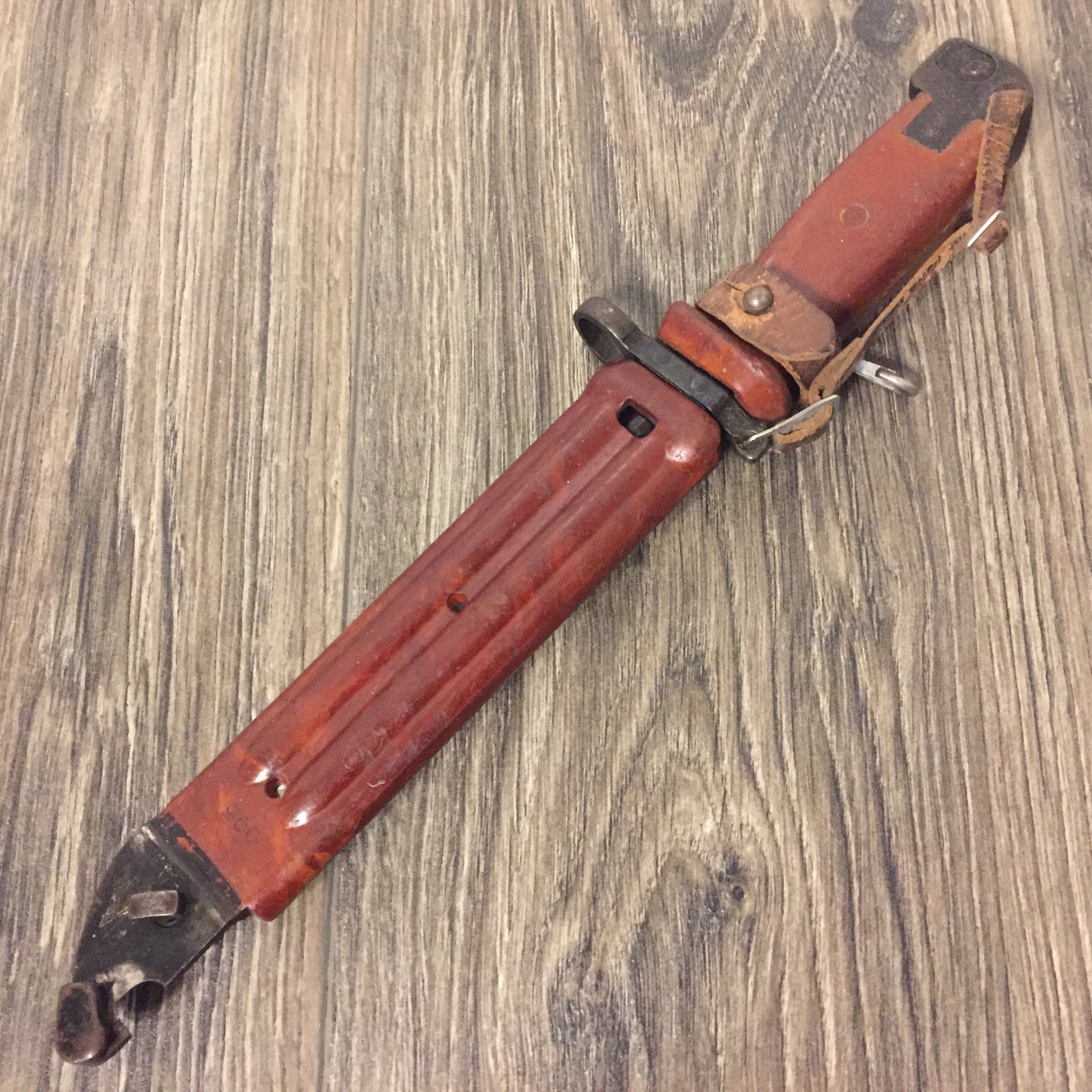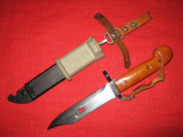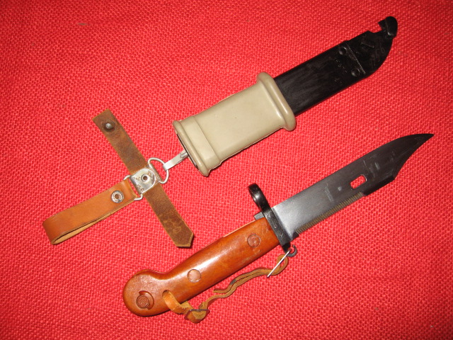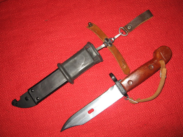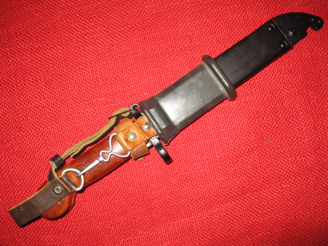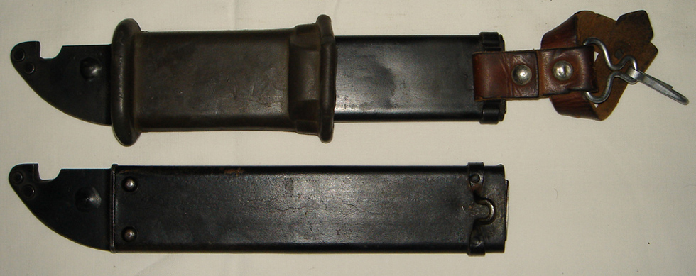 This two hook style hanger style was also adopted and used on early East German (DDR), Romania and is still in use by Hungary with only minor differences on AKM Type I bayonets and scabbards. Mike