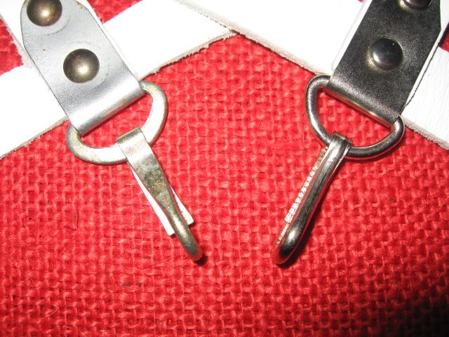 Pictures showing the possibilities / options of a second snap hook in place of the riveted on belt loop.