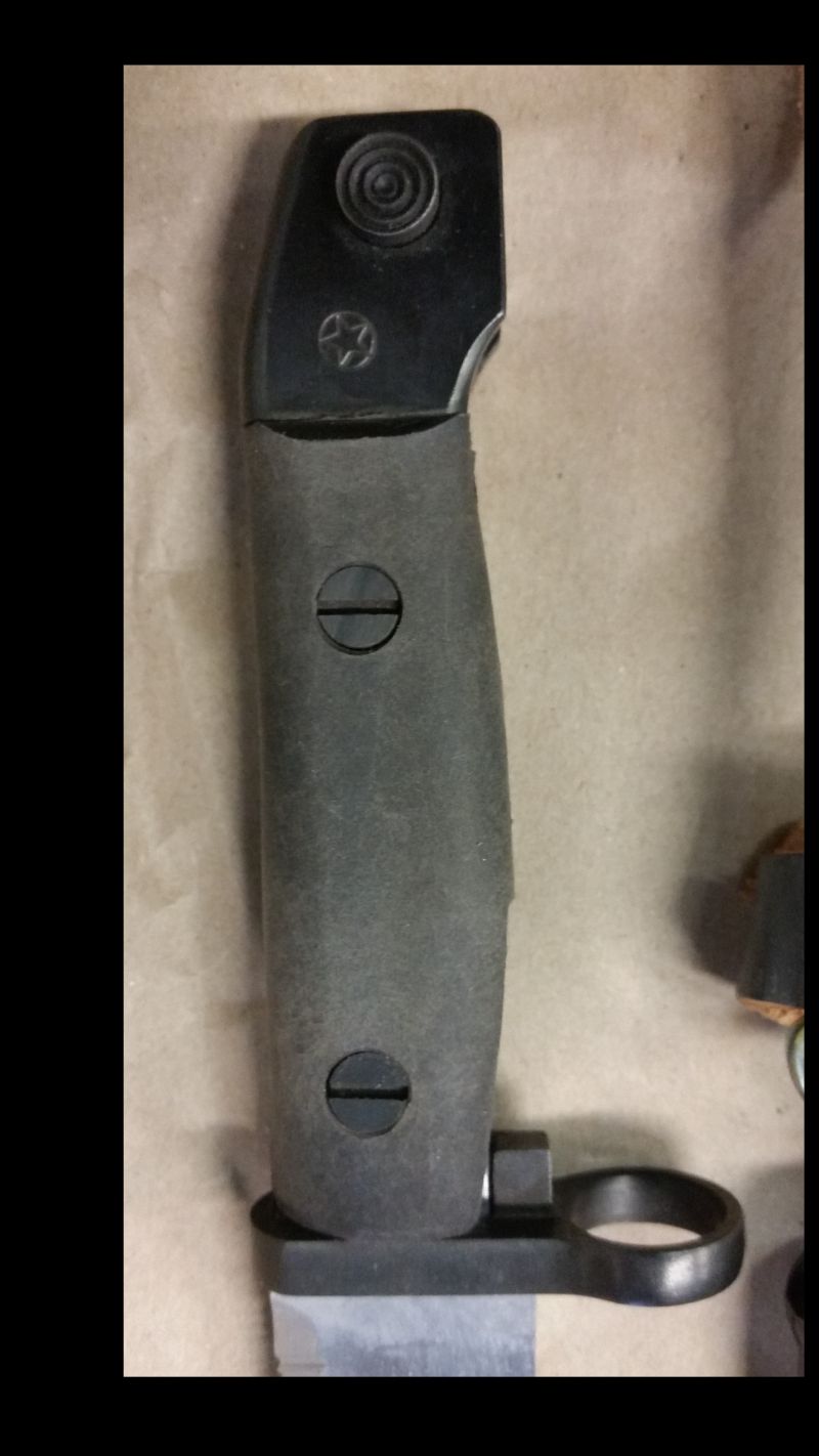 Guess all know the story behind them and why they are in East German scabbards. A Dealer her in Germany made a deal with Vietnamese dealer and he could only get the bayonets/knives but not the complete ones. So he bought the knives and put them in his piles of new East German scabbards.