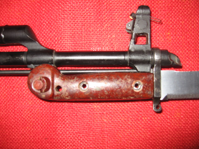 Good idea. Here are the results. I only have access to 2 AK74s, Polish and Bulgarian. My modified East German AKM 6X3 Type I does NOT mount on either one. That eliminates these 2 possibilities and we still do not know what the modified E.G. and Hungarian 6X3 bayonets fit on. I also took pictures of a cut away 6X3 to show the same basic interference on these 2 AK74s. As a side note I believe a modified 6X3 bayonet with the pommel cut flat, (without the points), would fit on either one. Mike