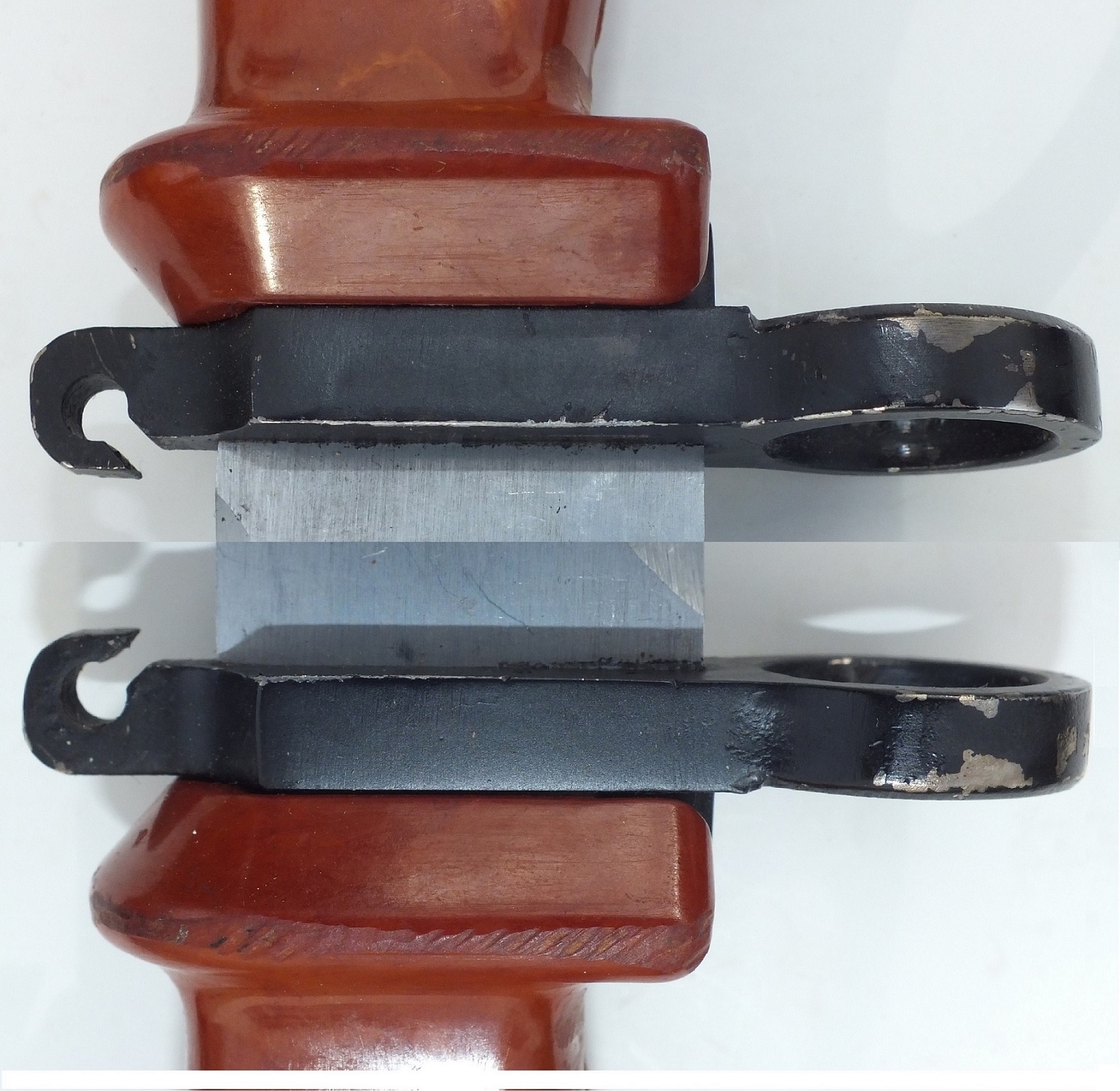 Thank you! Very interesting detail not shown in the reference pictures. A revised horseshoe shaped wire bracket for permanent attachment. Makes sense on a non-wire cutter bayonet. Mike