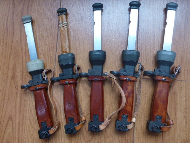 Another note on the WZ 85 training bayonets. There were several unusual prototypes and limited test/trials, production runs of early versions of this bayonet prior to 1985. The final version, when accepted in 1985, also had a limited run in 1985. These bayonets are like the 1986 marked ones, but completely unmarked. They do not have the oval 11 or any markings on the end of the pommel and a quite rare. On an old Forum there was a collector, I believe in Europe, who collected only these bayonets and had almost all the versions, including the earliest prototypes. Mike