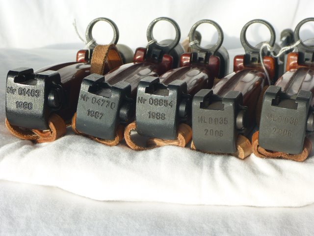 First of all, thanks for the very artistic picture of the various color/shades of the Polish WZ 85 rubber parts. From white through shades of gray to black. Nice group of bayonets! The second picture is an excellent collection of these training bayonets with corresponding marking information.