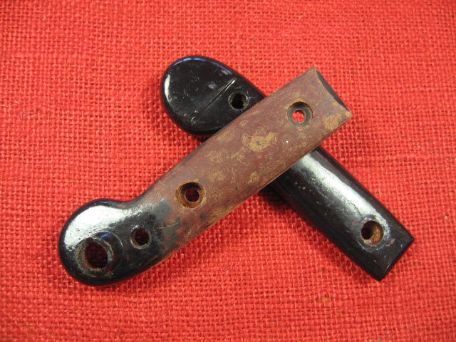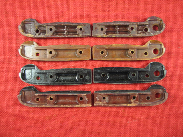 I would be very interested in what you find out about your friend's black Hungarian. As usual you are correct. There were plastic plugs under the smooth dimpled epoxy. However they are not visible unless you remove the sealant. On the early Hungarian military bayonet the sealant is clear and you can see the plastic discs. Here are pictures of the Hungarian grips I painted black and later removed and used for testing. I didn't want to perpetuate a fraud/fake. Also pictured are interiors of 6X3 grip panels. Top to bottom: Romanian, (used), Russian, (new), East German, (new), and Hungarian, (used). Mike