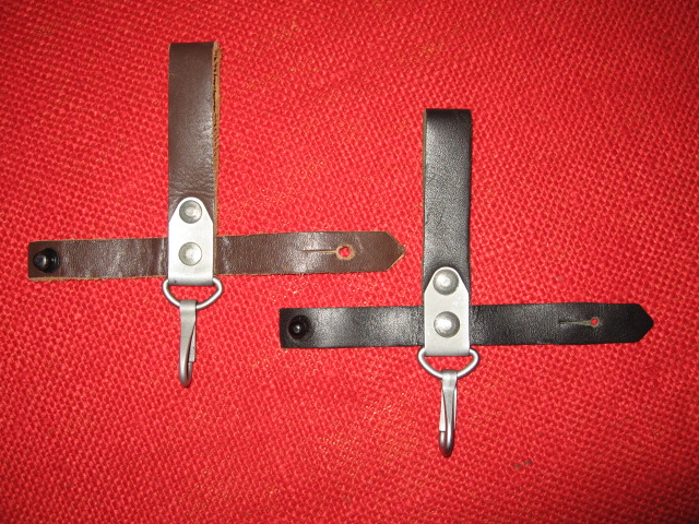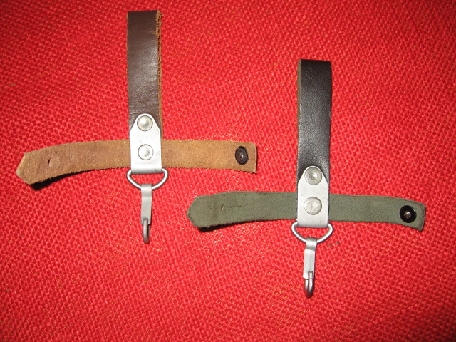 Thought I would document the different Bulgarian AK74 6X5 Type III hanger variations I have observed. It seems the earliest ones are a carry over from the AKM 6X4 Type II bayonets. The are the standard single hook style made of smooth brown leather. Next came the same style with the same hardware, but made with smooth black leather. The latest variations are the same basic style but made from a black fabric, (tarpaulin). They have all new black hardware and have a snap hilt strap fastener. The second version of this new hanger also incorporates a second snap on the belt loop allowing the hanger to be easily removed from the belt, with or without the bayonet and/or scabbard. Mike