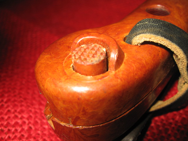 Here is a minor variation in Russian AKM 6X3 Type I bayonets that is rarely noticed. The catch release buttons are often in different shapes and colors. To the best of my knowledge they are random and possibly from separate sub-suppliers with no correlation to age or specific usage. Here are 4 different styles from my collection. All 4 are bayonets from the Tula Arsenal. 1. Small edge ridge and fine checkering. 2. Circular grooves/ridges. 3. Coarse checkering with points DOWN (v). 4. Coarse checkering with points UP (^). And, No..... The last two are not an optical illusion, they are molded differently. M.