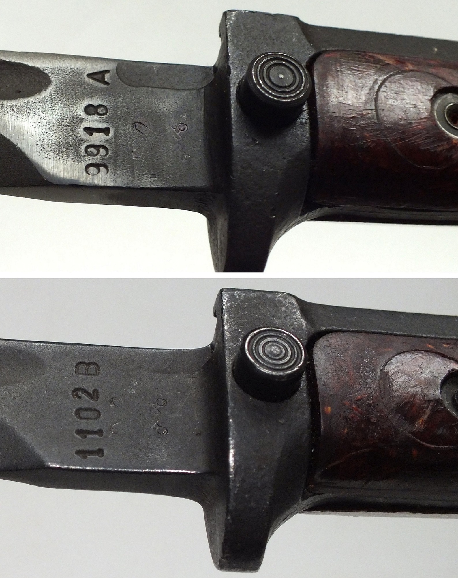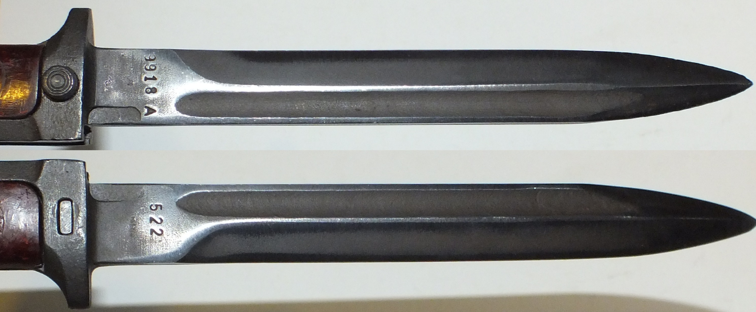 The version, Type I, II or III, of the VZ58 bayonets can be determined by the serial numbers on the blade ricasso. The 4 digits followed by the letter indicate the bayonet above was originally a Type II wit a short tang. Mike