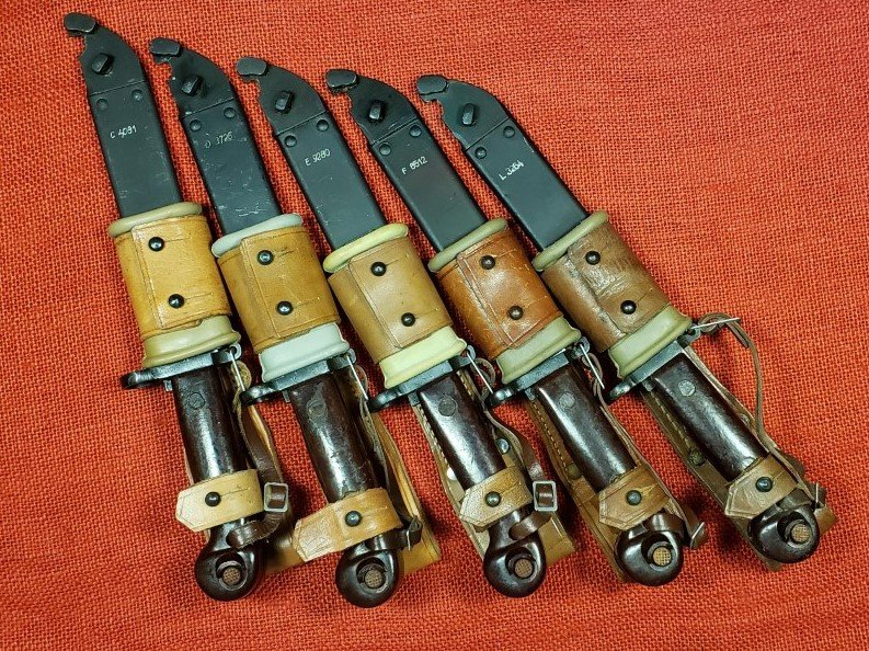 Here is what I have so far. Five different Romanian PSL 6X3 Type I bayonets and scabbards. I still need letter prefix, "G", "H", "K" that have been confirmed. Letter prefixes "M", "N", "P" and "R" may also exist, but are not documented. Mike