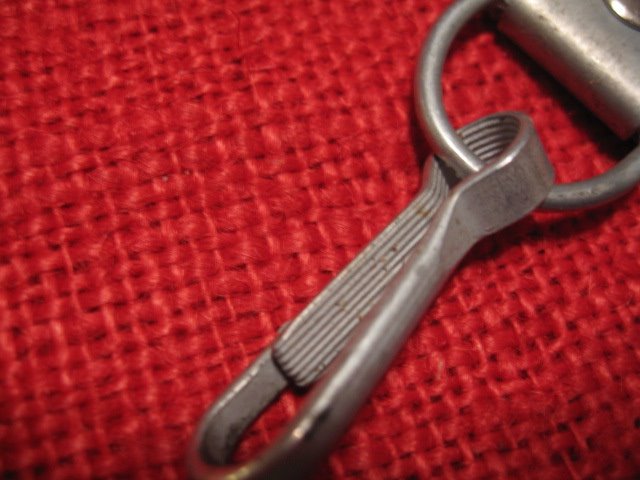 This first group does seem to have the Yugo brass hilt loop stud and two of them have Yugo snap hooks. One is without a metal bracket and two have blacken sheet metal one. The "D" rings are larger in size and rounded. one has a large black round wire snap hook. The small squared ring was originally a standard USA /NATO field gear, (pack strap), snap hook assembly. Mike