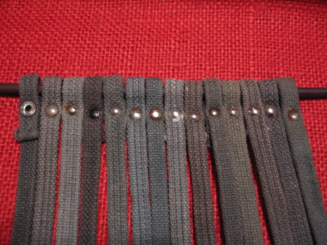 Here is what a selection of Yugoslavian AKM wrist straps looks like. I bought a large lot of new and used ones a few years ago, complete with buckles. They came in a sealed bag covered with dirt, oil and grease. II washed them in Woolite and they came out nice. I was amazed at the different colors, fabric weave and widths. Also different shapes and sizes of buckles and the rivets. Some rivets were black, copper-brass(?) and bright metal, some had washers some didn't. Note that the Iraqi AKM Tabuks used these same straps.