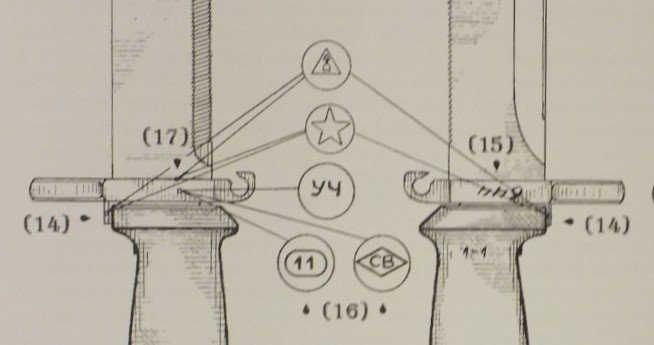 This version of the Russian AKM 6X4 Type II bayonet and scabbard are rarely seen and or mentioned. They are basically a standard issue item with some special finish and markings. They are used as visual aids by training cadres during small arms and bayonet training. I do not have one of these in my collection. I have seen a couple of these for sale recently and have borrowed some pictures for reference. Also below is an illustration from a Russian reference showing the training mark on the cross guards. It is possible that they could be found on both Tula and Izhevsk bayonets. It is possible other variations of Russian bayonets and small arms can also be found with these markings.