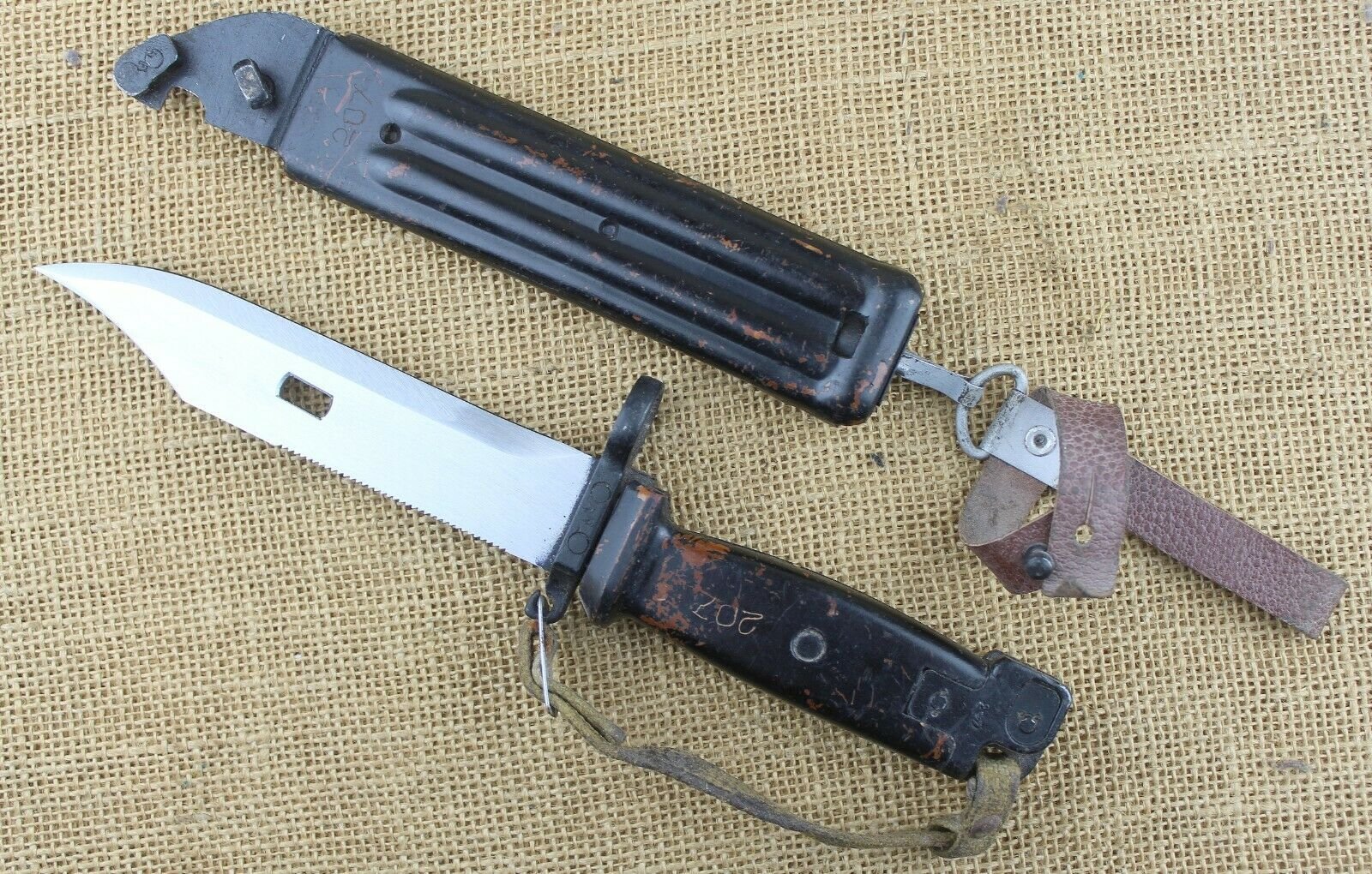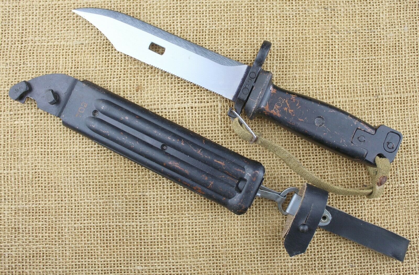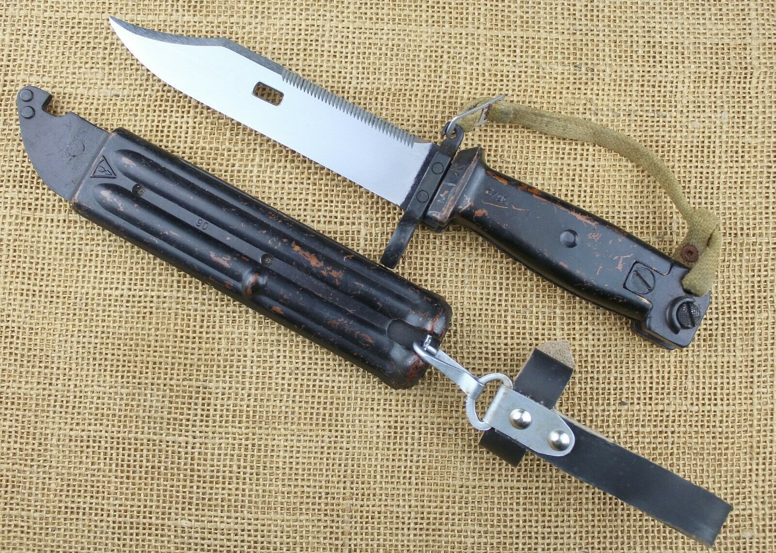 Here is another version to add to your want list. Russian AKM 6X4 Type III light weight pommel training bayonet and scabbard.