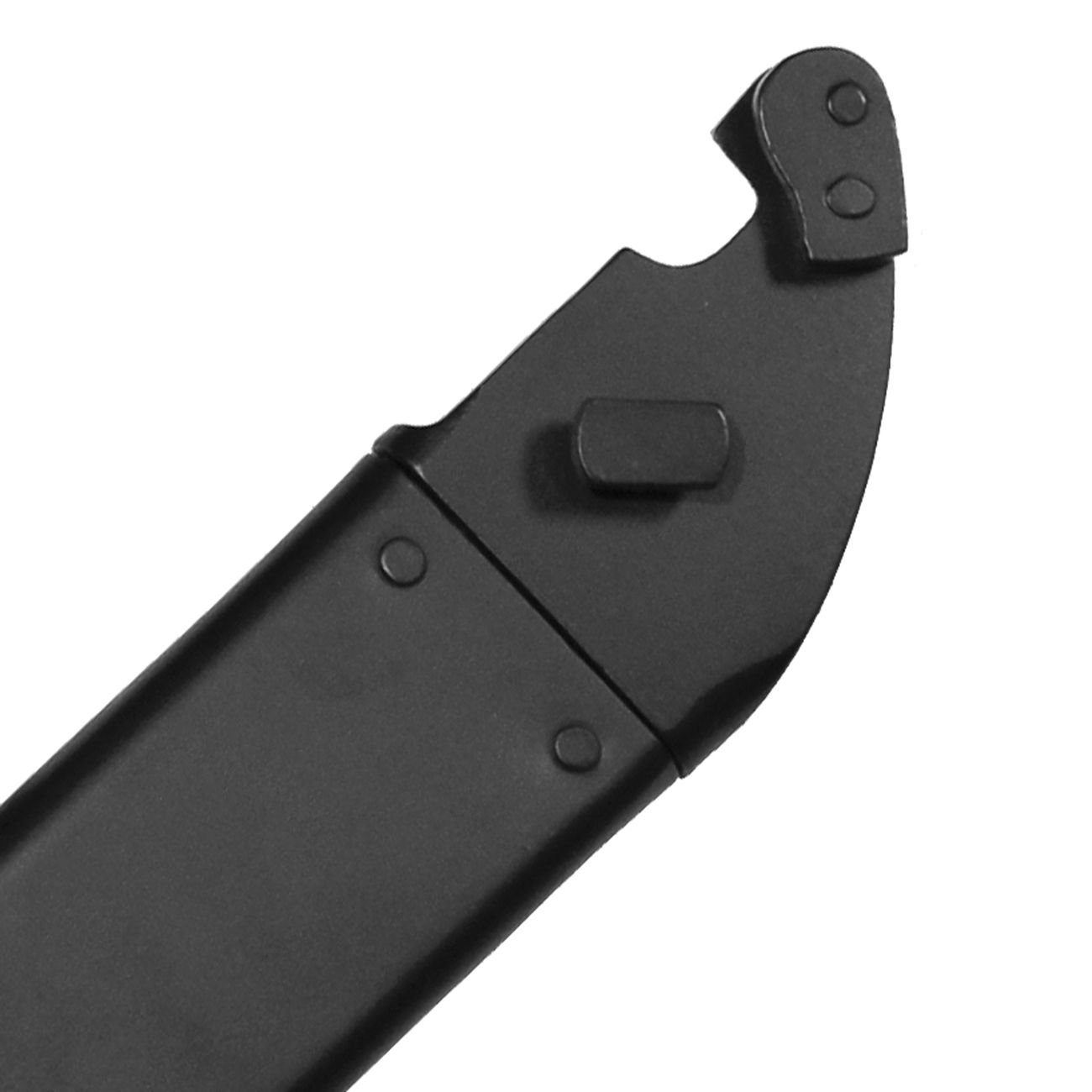 Der Sokkel am Parrierteil ist übergroß und kann nicht auf der Waffe veriegelt werden, das Bajonett fällt ab. Alle Metallteile sind schwarz Lackiert