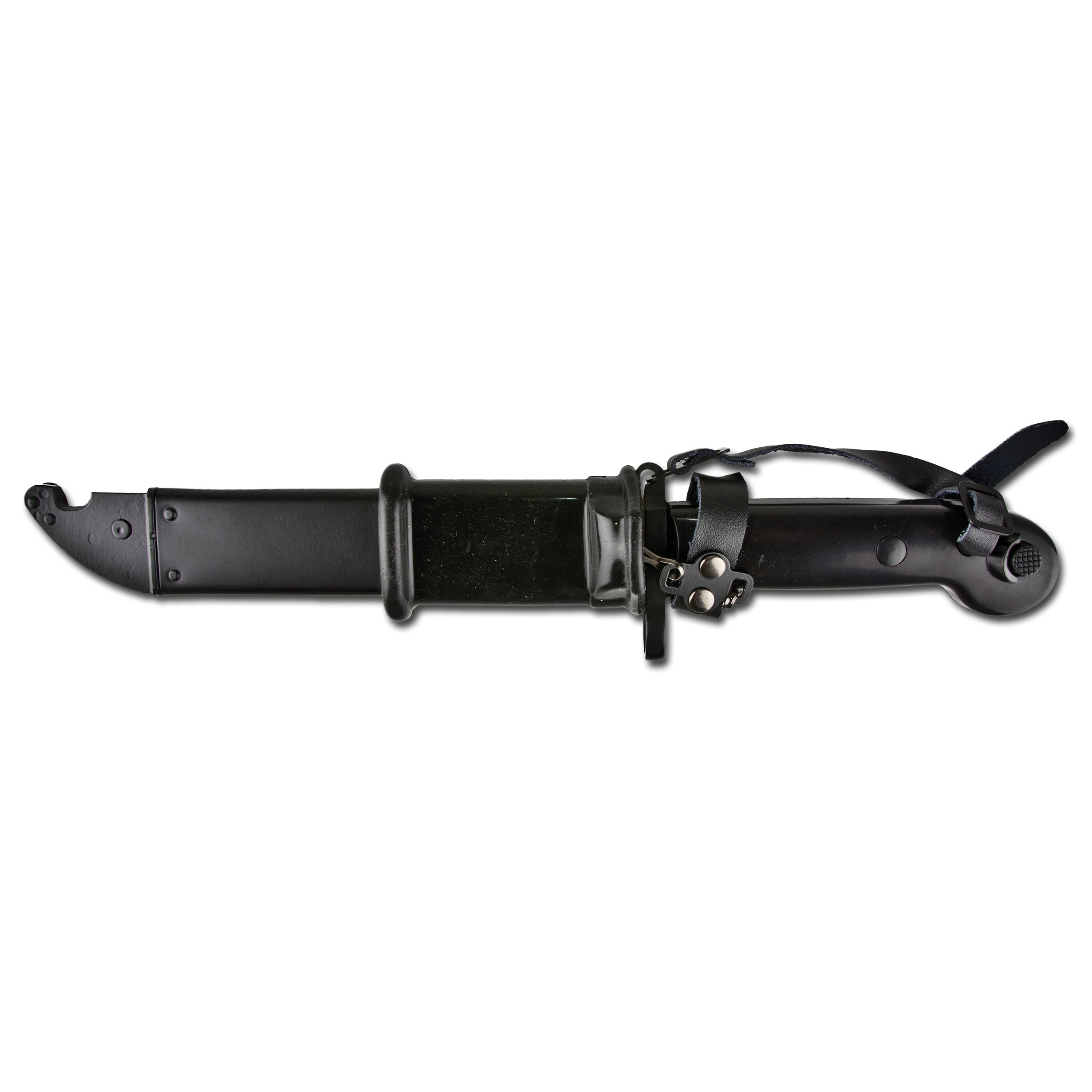 Pictures of the Commercial MFH all black (AKM) 6X3 Type I bayonet and scabbard reproduction. Mike