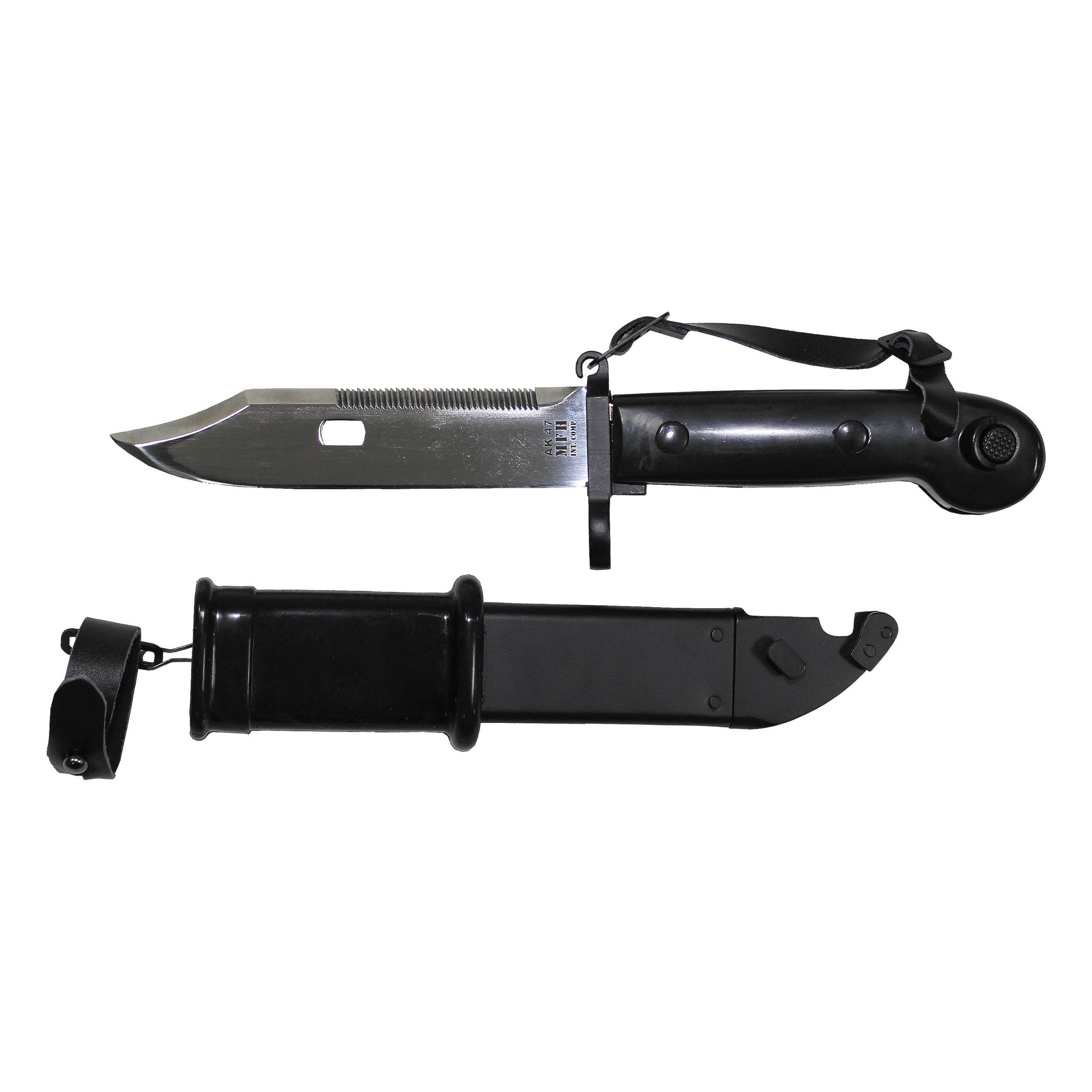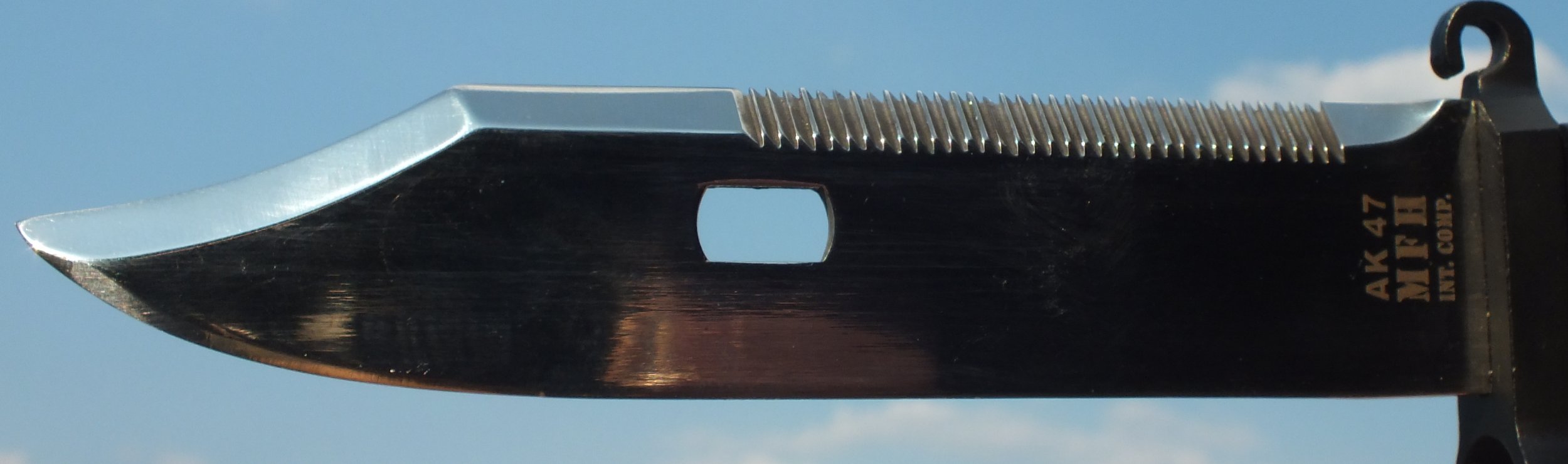 I made the strange discovery of this commercial bayonet manufactured by the Bavarian company MFH. The bayonet shows all the characteristics of a Hungarian model but in black
