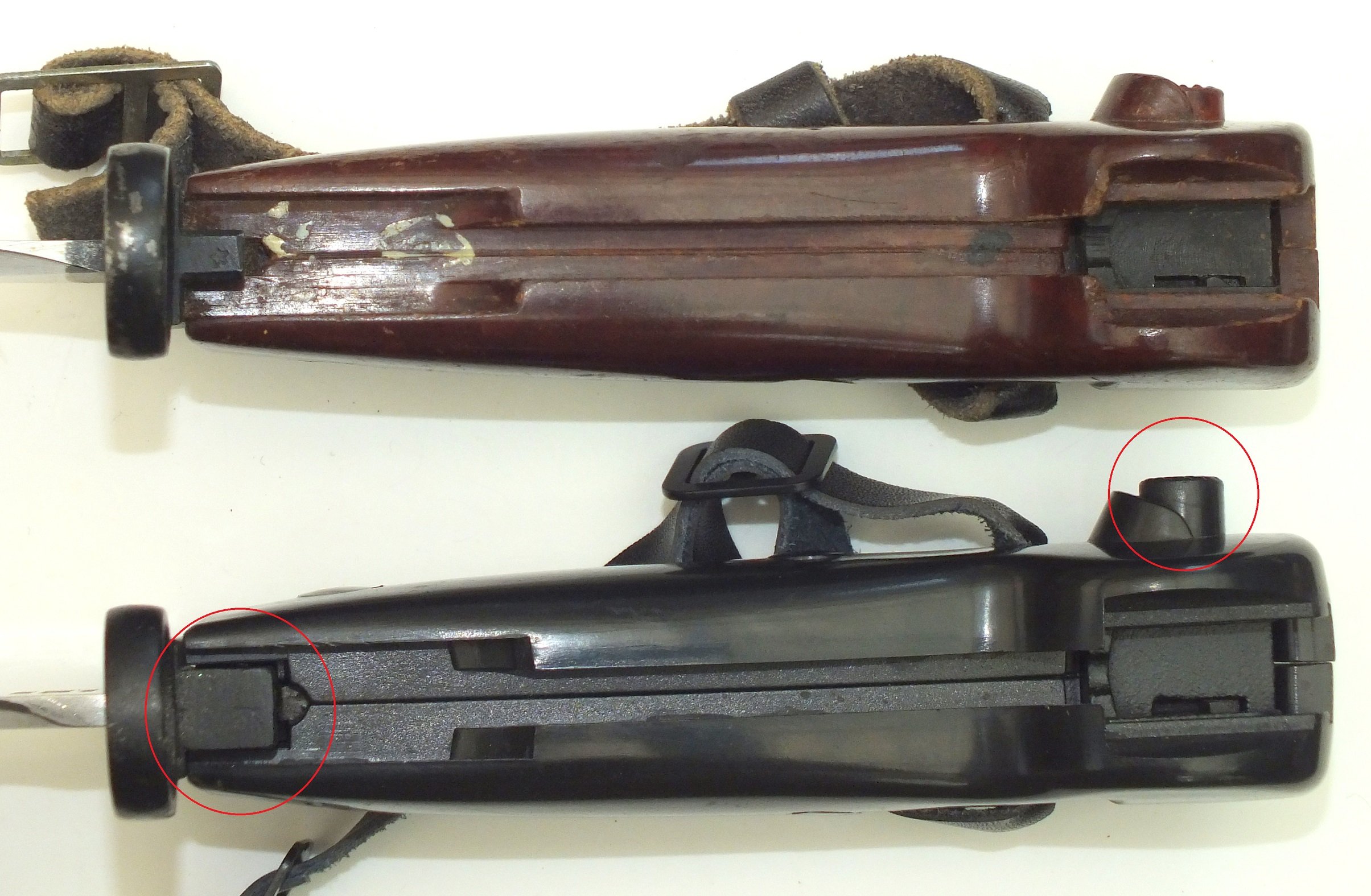Excellent analysis and pictures! Thank you Gerhard! It appears to be in a class with the plastic model of the Polish AKM 6H4 bayonet and scabbard made in Japan. Just toys. I would still like to have one, but not a high priority at that price. Mike