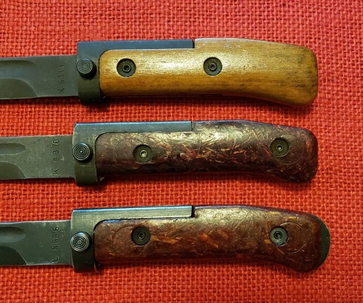 More pictures of the Czech VZ58 Type I bayonet with modified hilt. The bottom two show the differences between the Standard Type I Bayonet on top. Middle is a Type I with Type II grip panels. On the bottom is the Type I with welded on hilt extension and Type III grip panels.
