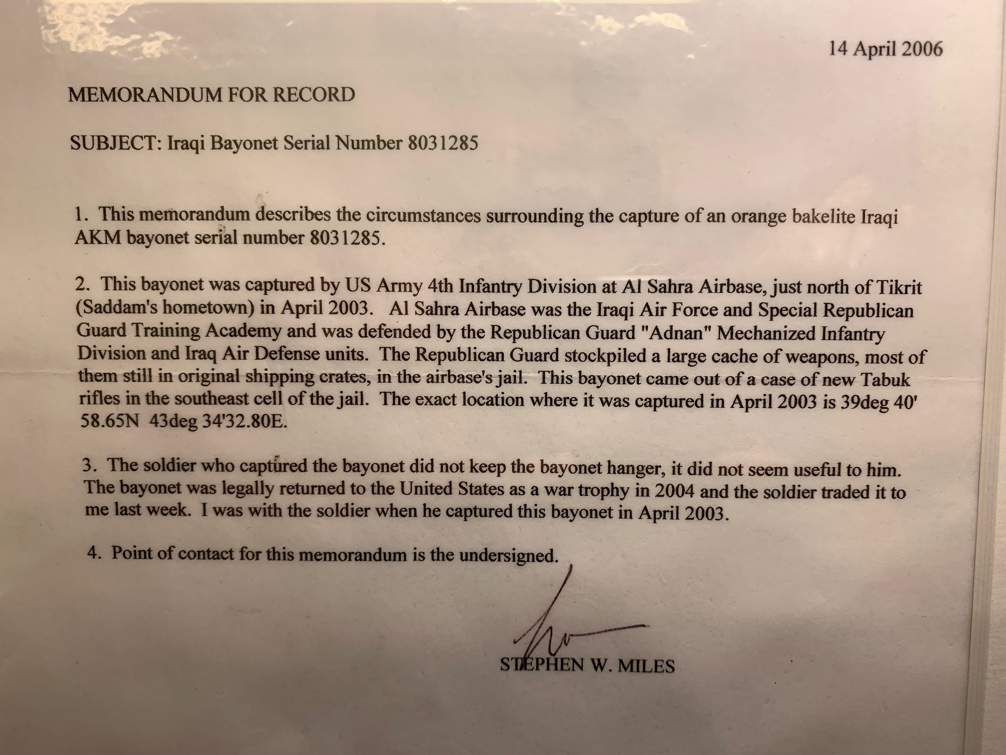 This one came into my possession via the USA, but not from a combat veteran, I bought it from Martin Ivie.