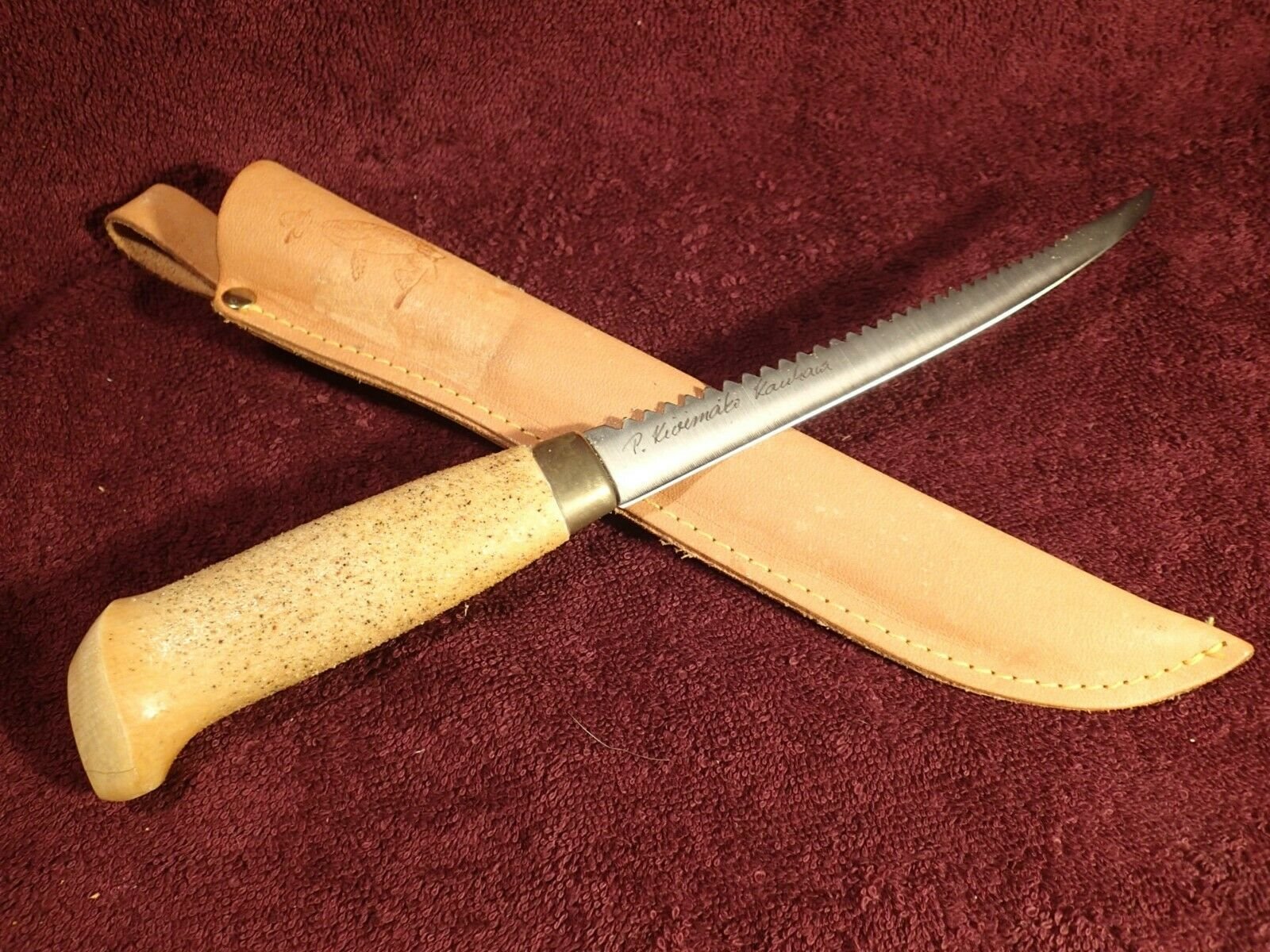 I agree, and it could well be. The similarities are there. However in my experience the Finnish filet / fishing knives have a thinner narrower blade and a more tapered hilt were it meets the blade. The scabbards are a lighter weight leather and often have commercial marking and decorations. The pictures I posted seemed that the scabbard matched the bayonet.