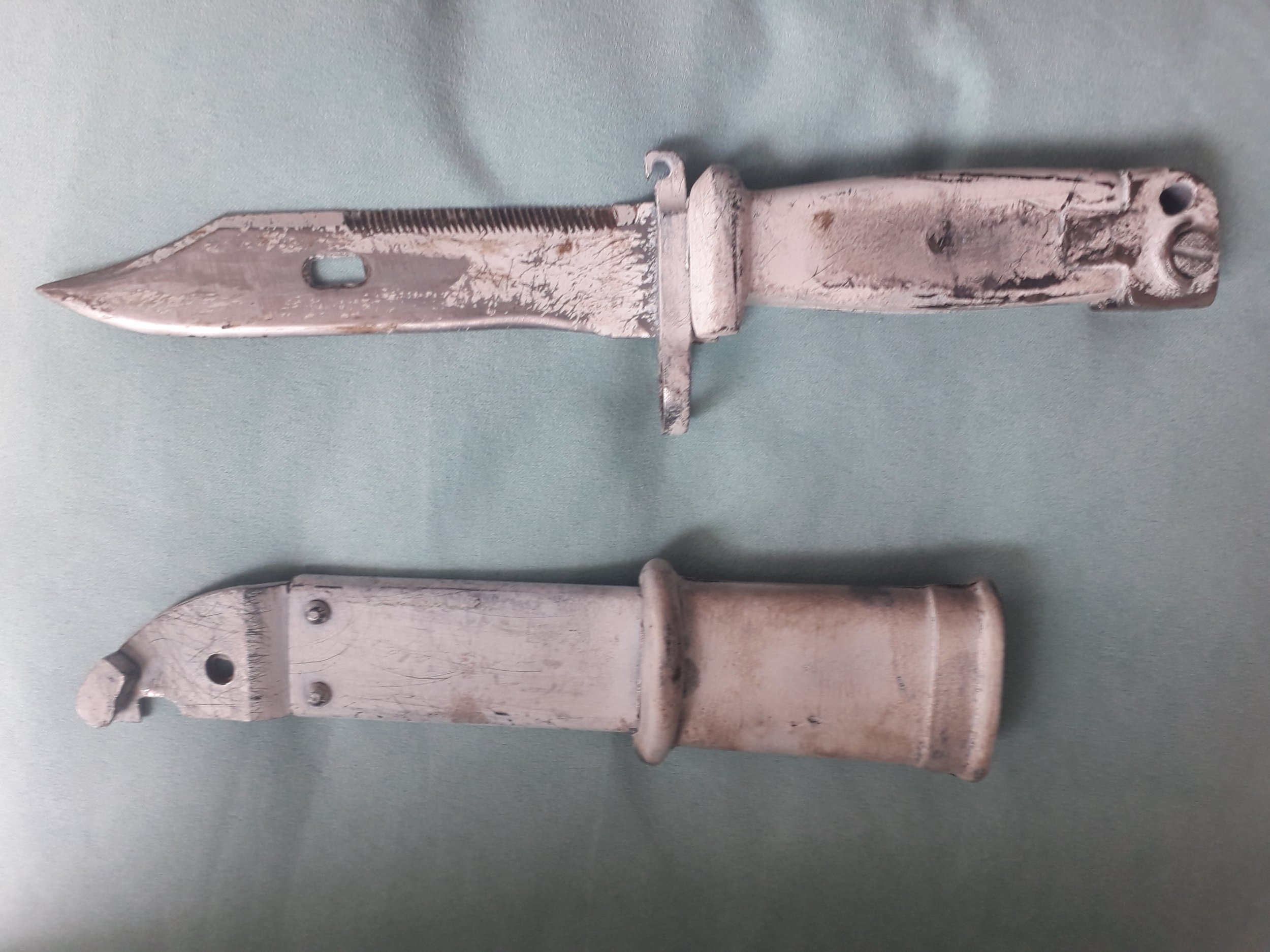 It does appear to be an Egyptian AKM 6X4 Type II bayonet in the usual Type I scabbard. Not sure why or where it was painted off-white. Could be desert or snow camouflage, they were used many places.