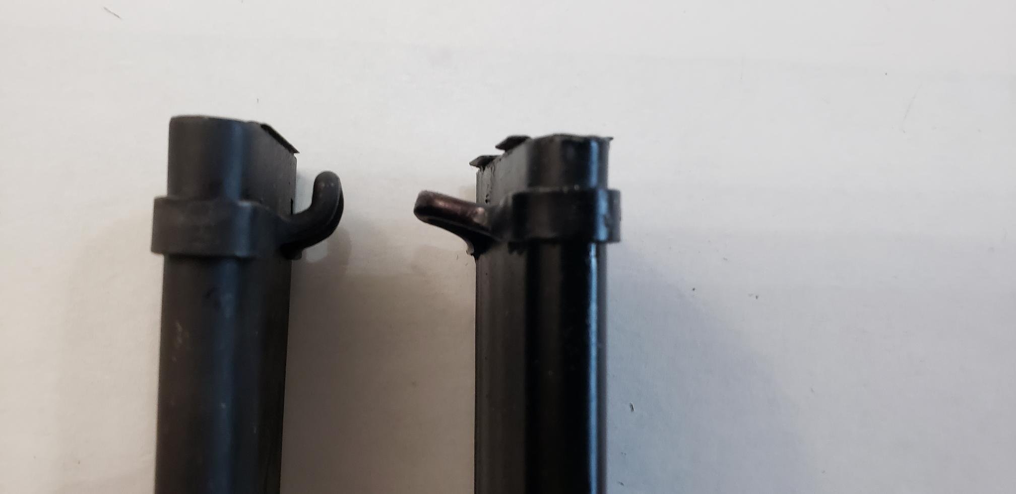 You did bring up an interesting point about the scabbard hanger bracket. I had not paid much attention to the ones from different countries. Obviously, the different countries that made the AKM Type I scabbards, used different specifications and standards. Below are close-up pictures of the hanger bracket on an Egyptian, (right), and a Romanian, (Left), scabbard. The Egyptians had their own methods and the Romy represents most of the other countries. Mike