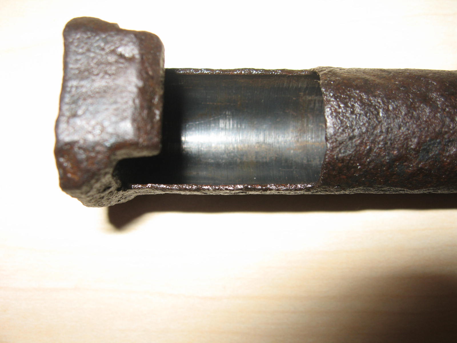 Here are three samples of Type 56 spike bayonets with cast hilts. By looking close you can see a slight ridge where the mold halves meet. Two are smooth with only light exterior machining. One has a browned finish. One is unusual as it has little or no finish, but it is numbered on the top hilt flat. The third one is a crude casting and has almost no exterior machining or finish, except for the ends. The interior is fully machined and functions normally. Note the thin side walls of this casting compared to the others. M.
