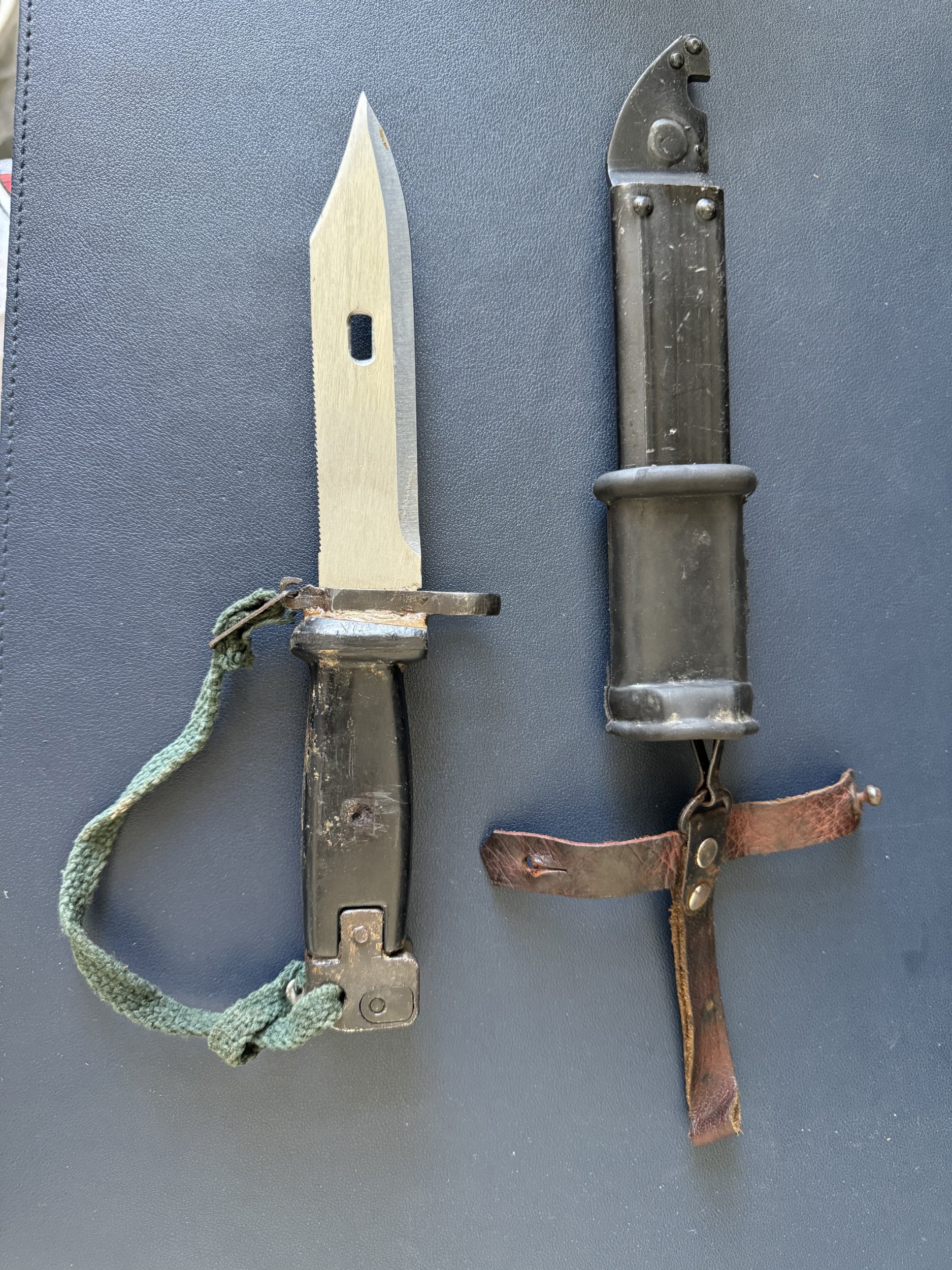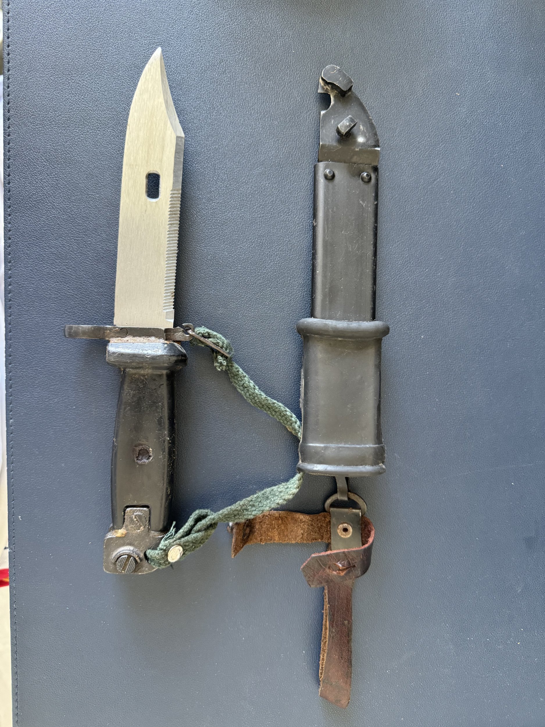 Mr. B. wrote: Tue Aug 06, 2024 5:58 pm Nice pair of Egyptian AKM 6X4 Type II bayonets in the correct Type I scabbards. From what I can see the fabric wrist straps appear to be different, but correct. Interesting weave?