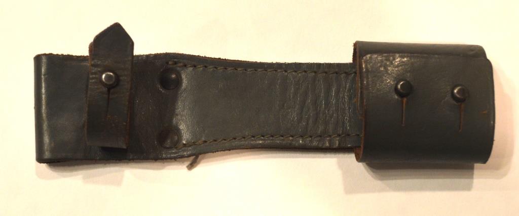 Based on what I have observed on a lot of Romanian rifles imported to the US, I have been under the distinct impression that the Romanians bought a bunch of left over DDR AK parts, materials, and tooling from the Germans after unification. I hypothesize they also ended up with stocks of leather from the DDR and these are made from that leather. As Romania (along with Bulgaria and other countries) supplied a lot of material for the Third Balkans War (1991-2001) that would be a likely candidate for the destination for this hanger as well as many of the other odd hangers we see.