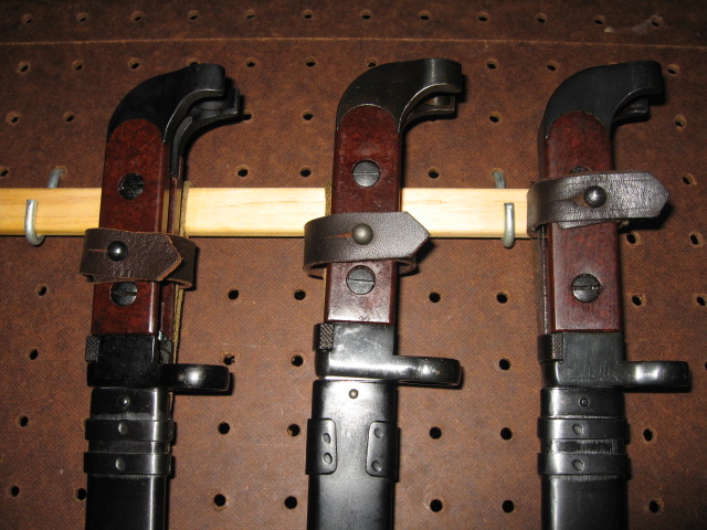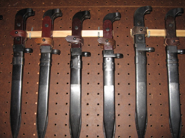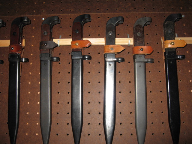 One last scabbard point, (pardon the pun), for today. To identify scabbards, observe the type of point style and the position or lack there of, of a drain hole in the tip of the scabbard. If the drain hole is in the front and it has a large flat flange it is from: 1st Russia, 2nd N. Korea. If it has a small flange and a hole in the front; 3rd China. Large flange and drain hole in back: 4th Bulgaria and Romania. Large flange NO drain hole: 4th Finland and DDR. No flange and no drain hole: 5th Poland. Mike