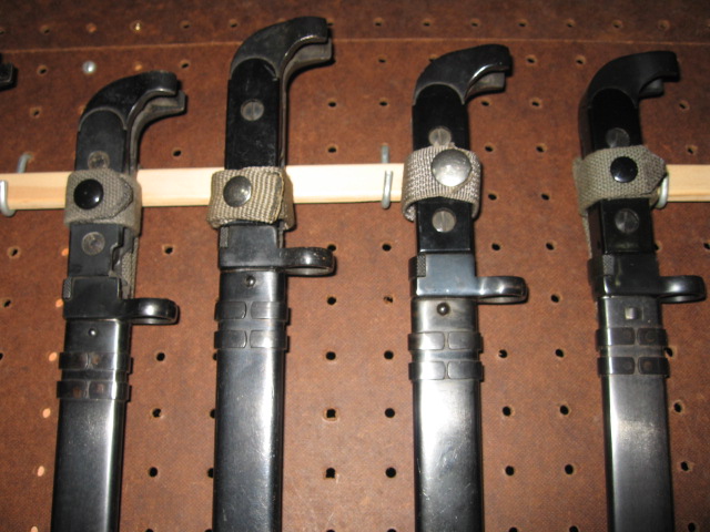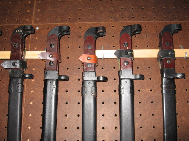 Further AK47 scabbard bar attachment variations: 1st double bar, Russia, Finland, Bulgaria and Romania style. 2nd is split double bar, East Germany, (DDR), only. 3rd is plain / no bar, Poland only. Mike