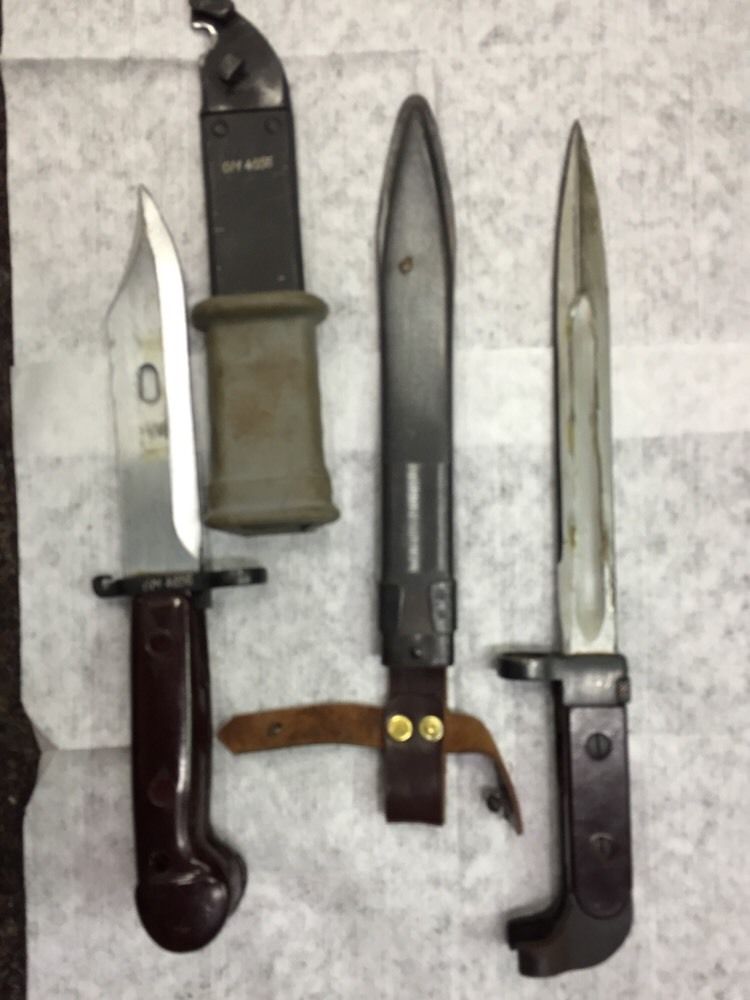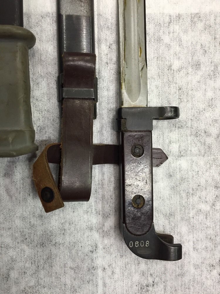 I believe that the "Finnish" bayonets are collectible as such and not "Russian". Yes, the bayonet, or at least the cross guard part was made and stamped by the Izhevsk Arsenal in Russia. Whether they were supplied to Finland as parts or completed assemblies is unknown. However they do not appear to have been completed in Russia. They have no Russian proof or acceptance marks or numbering. Most obvious is the lack of the "CB" in the flattened diamond on the pommel and the number placement and style. Also the final finish is different than the Russian bluing. Finnish ones are found blued, painted black and with a phosphate type finish.. Most telling are the scabbards, They are found plain or with the Bulgarian tu-tone sanding not used by Russia. They are found blued, painted or a phosphate finish. They do not have a drain hole, (front=Russian), or (rear=Bulgarian). The fabric hanger has the leather hilt strap attached by sewing, not buy a single (Russian) or double (Bulgarian) rivet. The Finnish ones are also found with a black leather hanger unlike any other countries. The majority of these Finnish bayonets are in new unused condition and have come directly from Finnish surplus. To me they are not modified or reworked bayonets or scabbards purched as surplus. The bayonets and scabbard may have been supplied as parts, incomplete or unfinished items and completed by Finland or supplied as completed under contract to Finnish specs. As proof of this theory, I offer the following evidence. In the early days of the AK47 in the East ComBloc countries parts, machinery and technology were exchanged among the various countries led by the USSR. Russian equipment and parts were found everywhere. Complete AK47 bayonets and parts were found in almost all the other member countries. The Izhevsk triangle and arrow has been found on the cross guard of early Bulgarian, Polish, DDR and Finnish bayonets. Mike