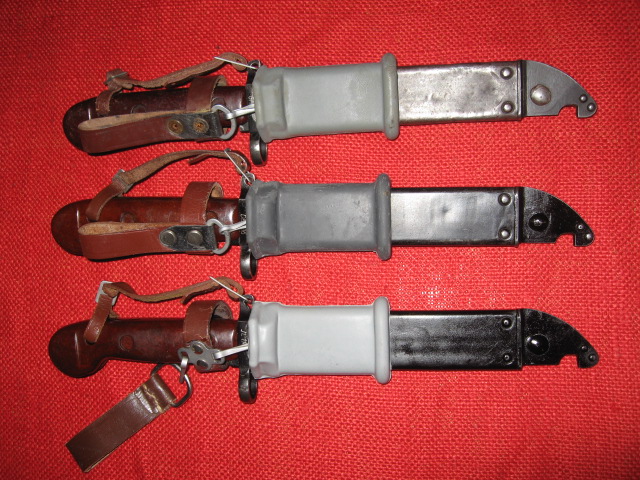 I agree that the Romanian AKM 6X3 Type I bayonet and scabbard with the "flat" pommel was early production. This and the fact that production was limited makes them difficult to find, especially in decent condition. Yes, I have seen a few that have been reworked, but not out of proportion with the rework of the more standard ones. More about these bayonets under the "Romanian" heading.