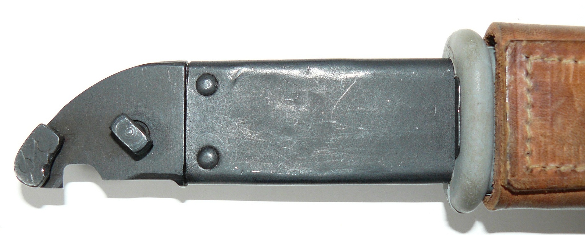 I agree that the Romanian AKM 6X3 Type I bayonet and scabbard with the "flat" pommel was early production. This and the fact that production was limited makes them difficult to find, especially in decent condition. Yes, I have seen a few that have been reworked, but not out of proportion with the rework of the more standard ones. More about these bayonets under the "Romanian" heading.
