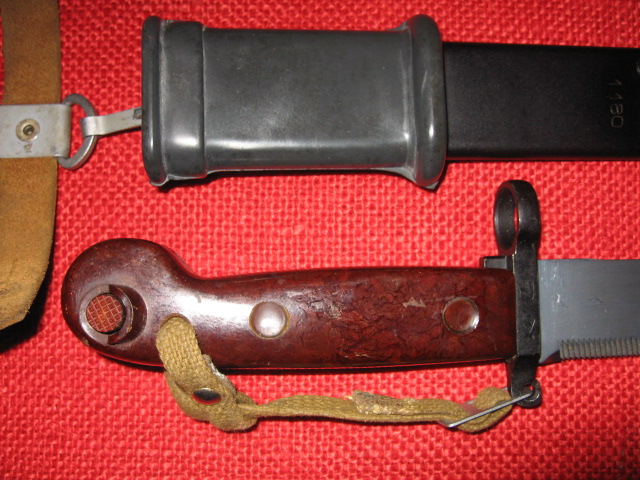 Also I might note that the flat end grips are not only are on both very early and late production of 6X3s, but also found on both Tula and Izhevsk bayonets. I have also heard opinions from several authorities and other forums that they are rework replacements. I am not 100% sure, but the evidence tends to agree. It is my belief that they are supplied by a sub contractor for rework and are similar to the "Window" mark found on type II scabbards and other parts. Were the rifles and scabbards supplied to Zimbabwe new or surplus? Mike