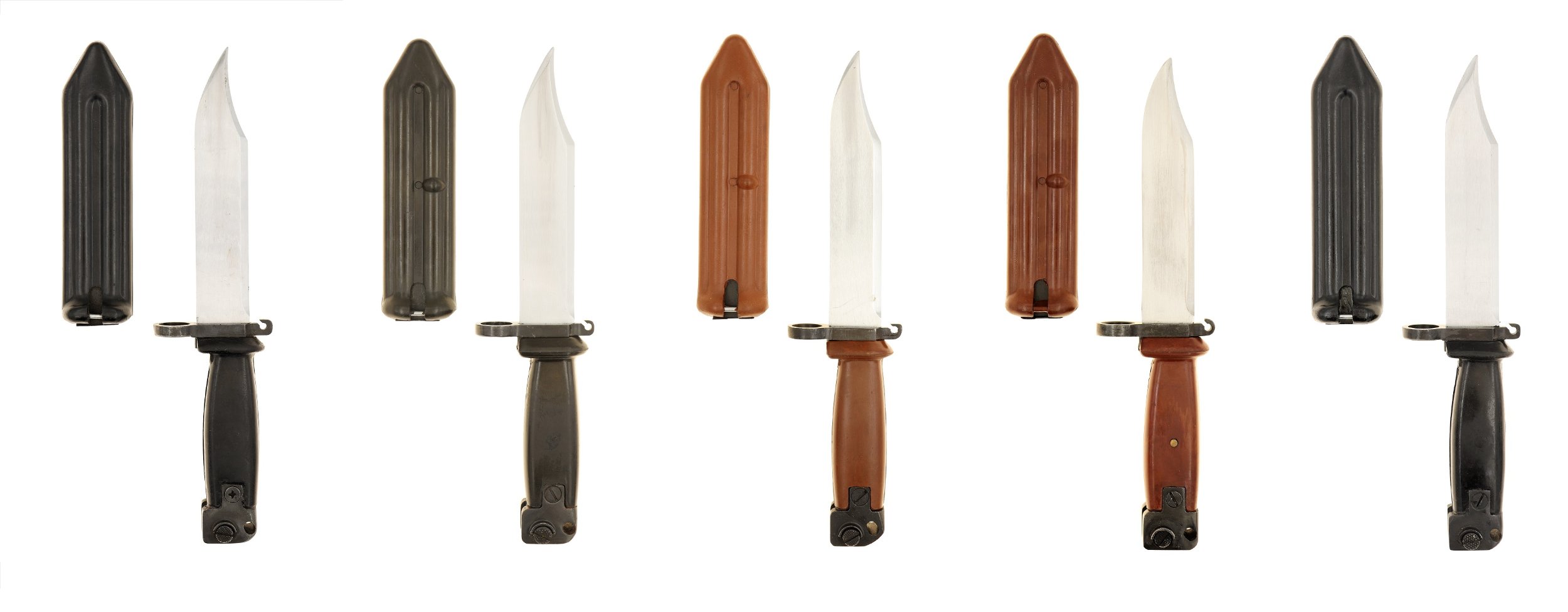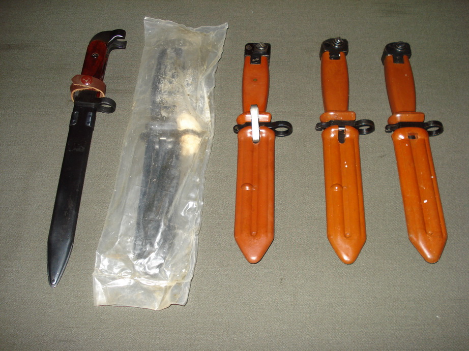 Last of the Chinese AKM variation pictures. These illustrate the scabbard variations. The bayonets and scabbards often appear to have been produced by different suppliers/contractors and do not always seem to match except for general color. The bayonet variations to not indicate any correlation to scabbard variations or may have been mixed at some point. Mike