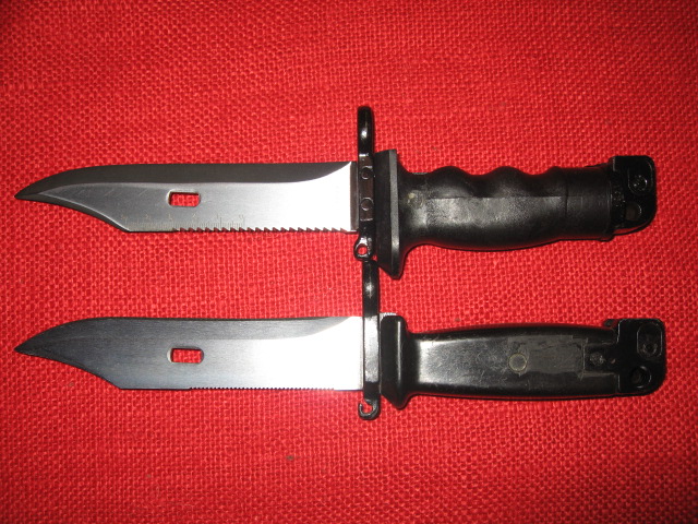 The following pictures show some of the features and differences between the KM87 and the standard East German AKM 6X4 Type II bayonet and scabbard. Mike